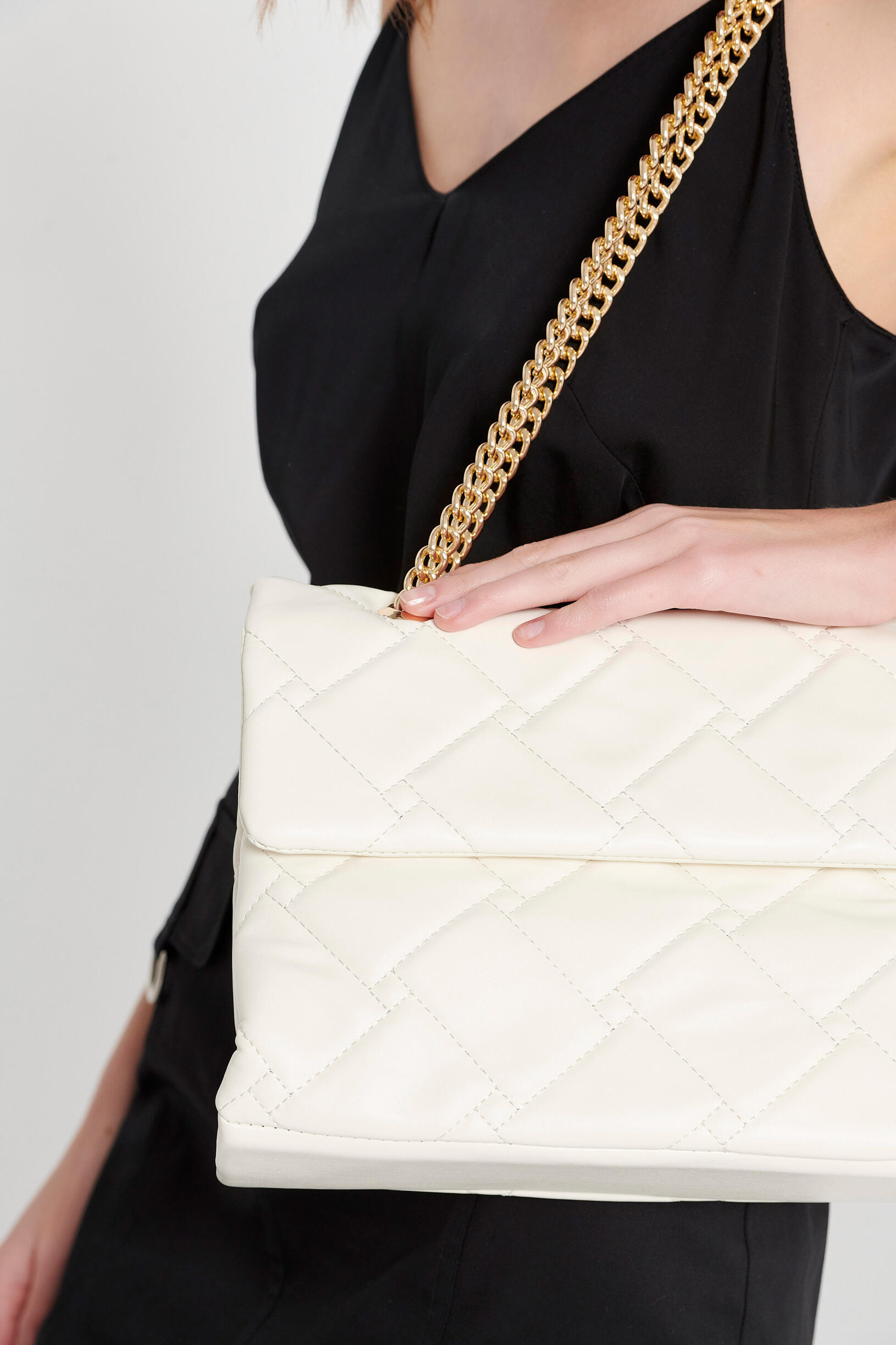 Καπιτονέ τσάντα ώμου με όψη δερματίνης.Διαθέτει εσωτερικές θήκες και λουρί αλυσίδα.Κλείσιμο με μαγνητικό κουμπί μπροστά.