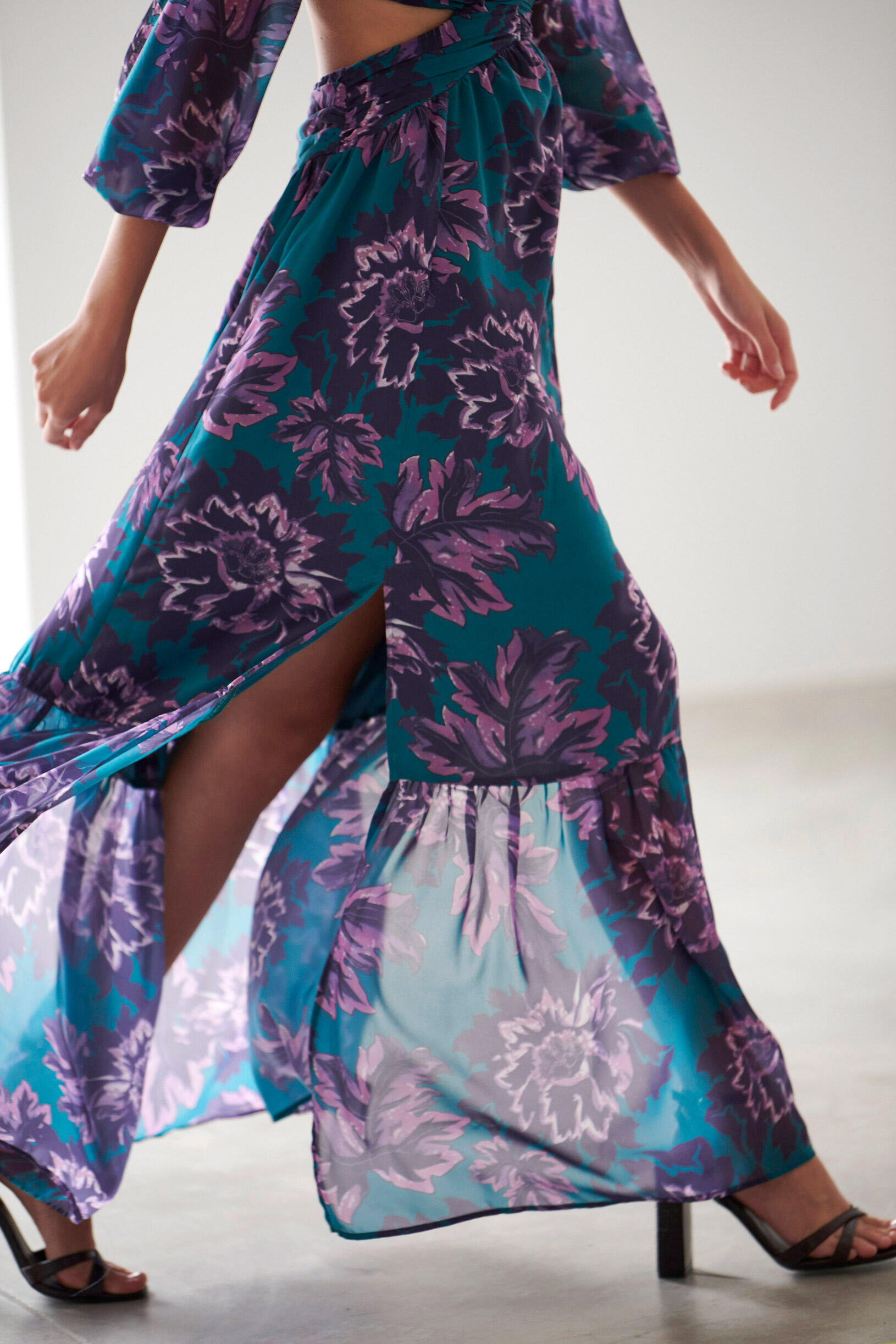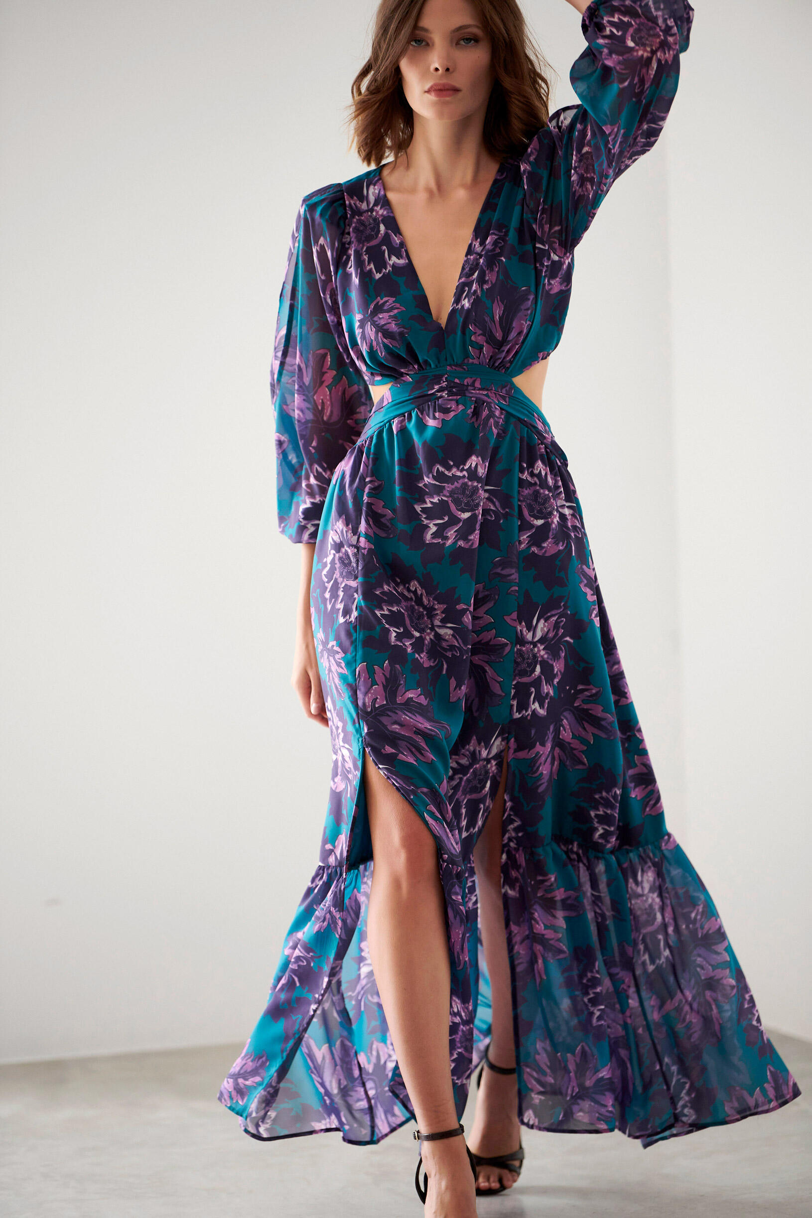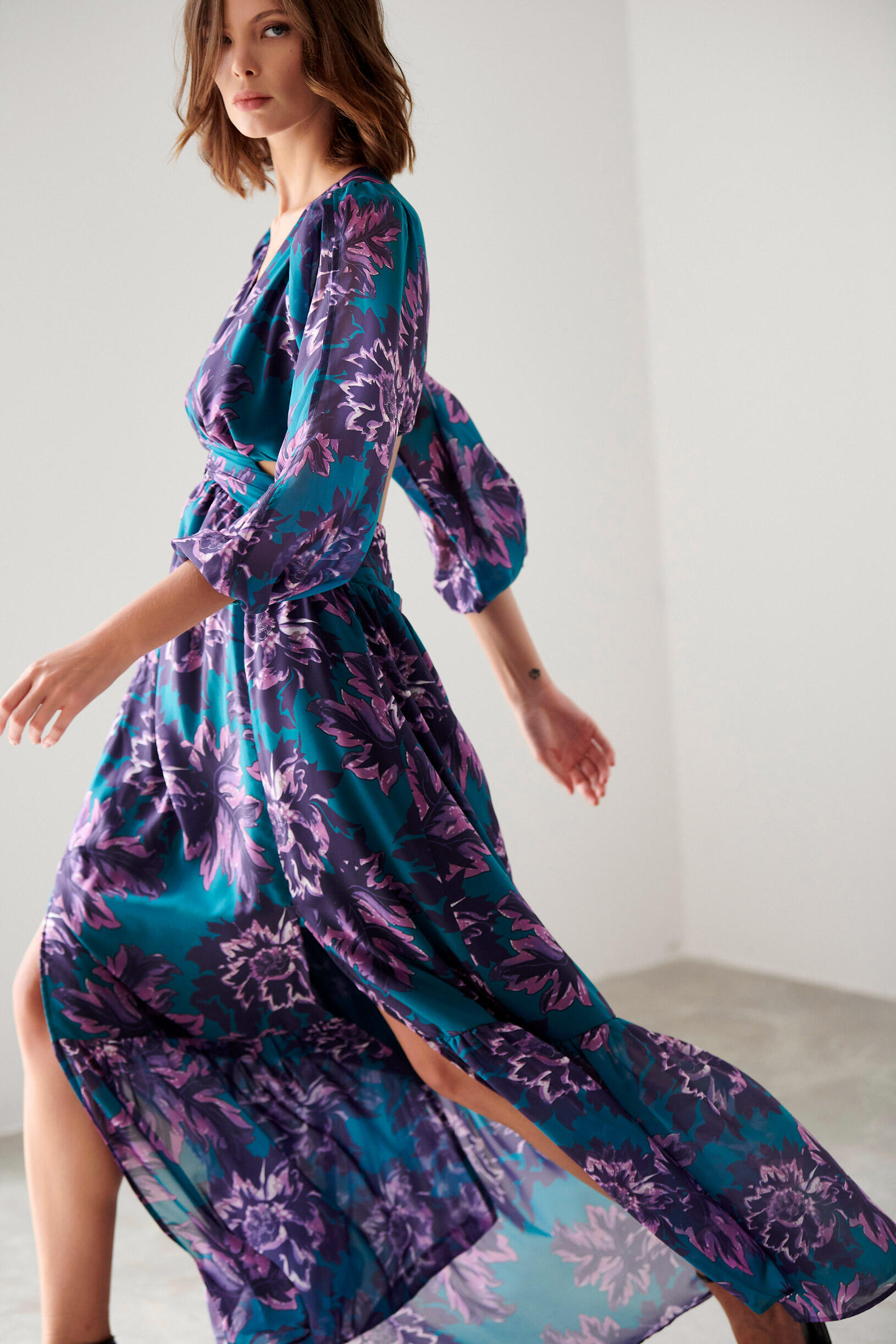 Εμπριμέ maxi φόρεμα Κωδικός 10-341688-0 Περιγραφή Φόρεμα με ανοίγματα,μανίκια 3/4 με λάστιχο στο τελείωμα,κλείσιμο με κρυφό φερμουάρ. Σύνθεση 100% polyester