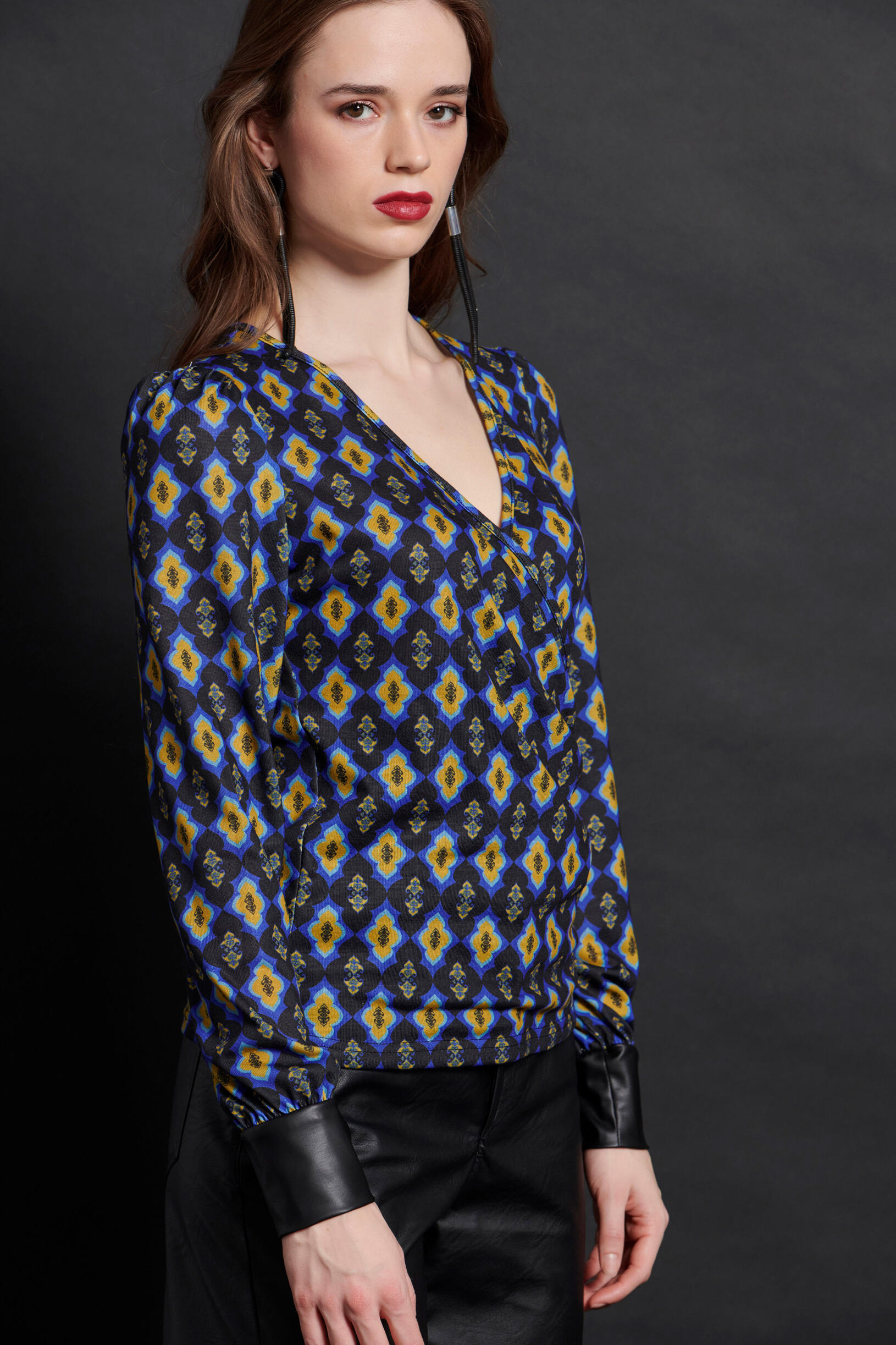 Blouse with printed cruise print SKU 10-341904-0 Description Long-sleeve blouse with a crotchet print and an open neckline. Synthesis 98% polyester 2% spandex