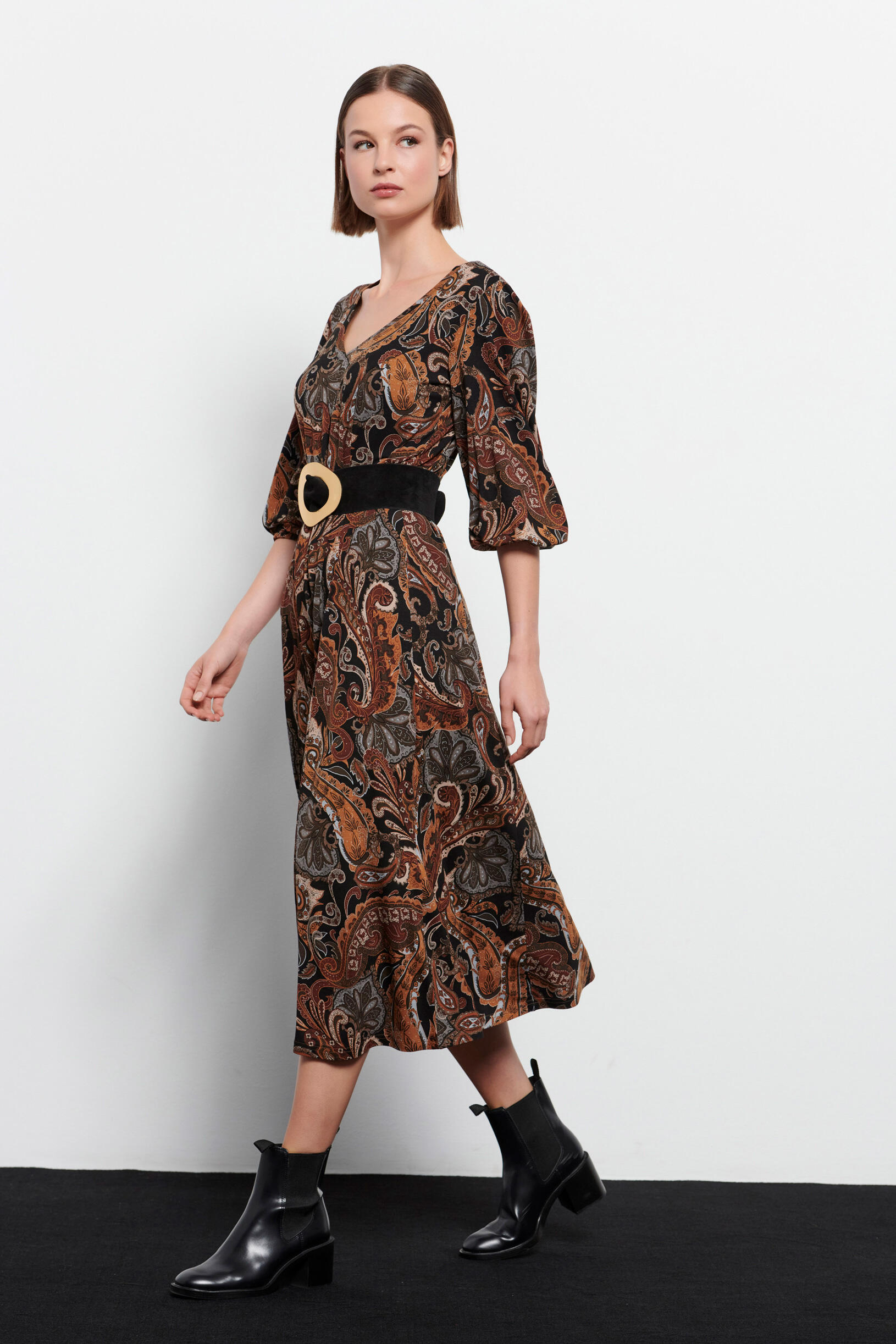 Maxi dress with printed pattern SKU 10-341875-0 Description Long dress with printed pattern and V neckline. Synthesis 96% viscose 4% elastane
