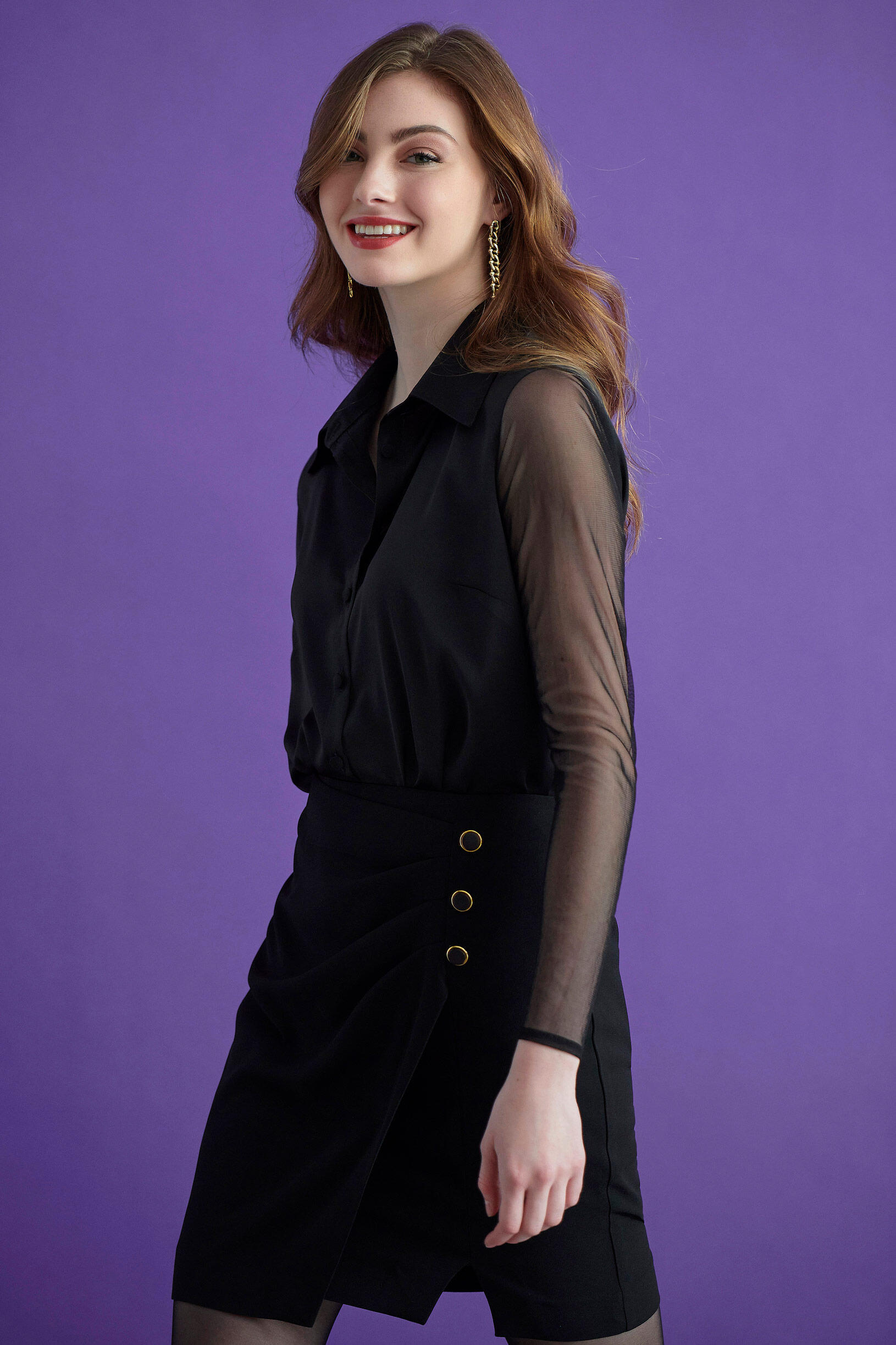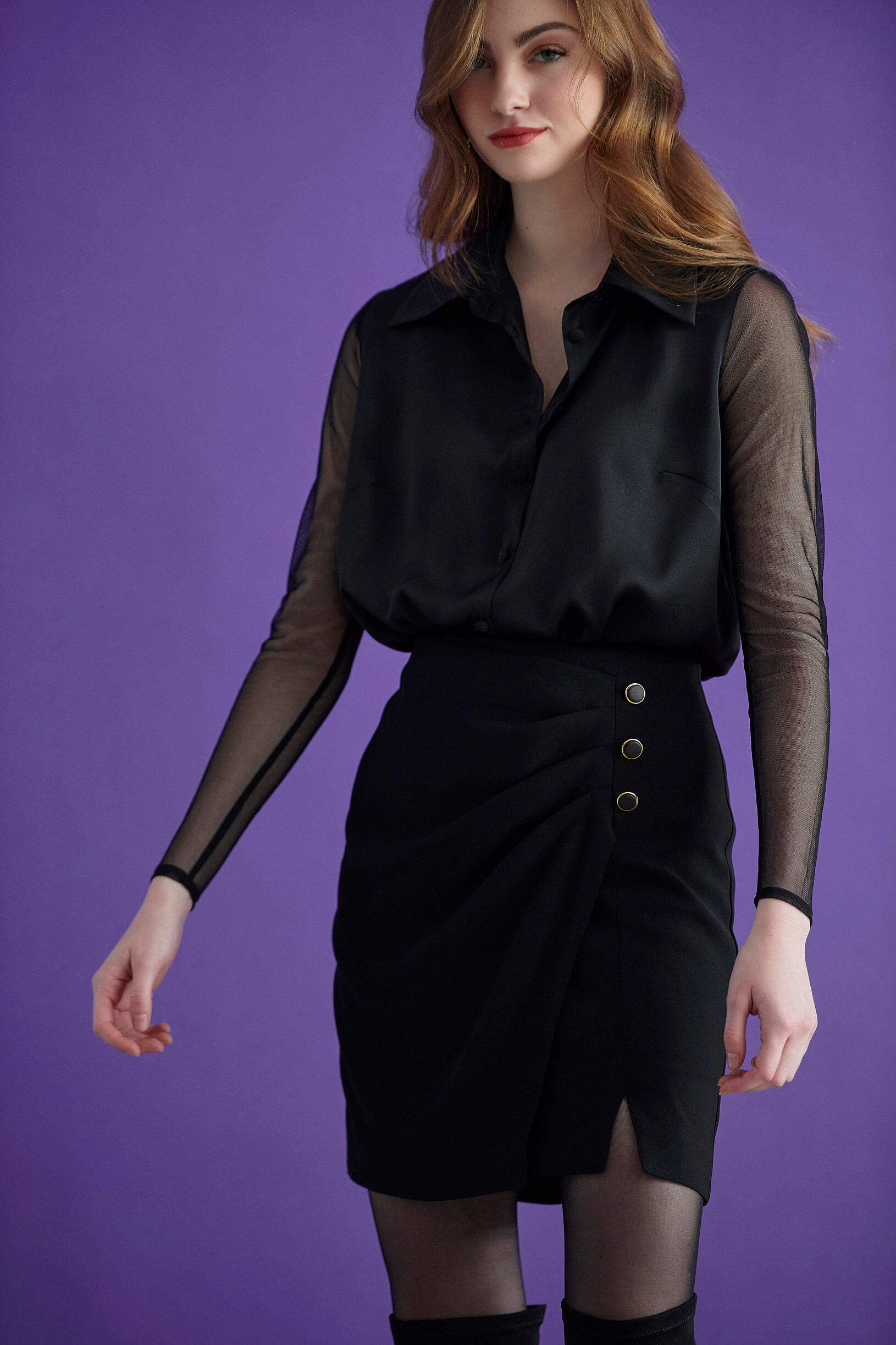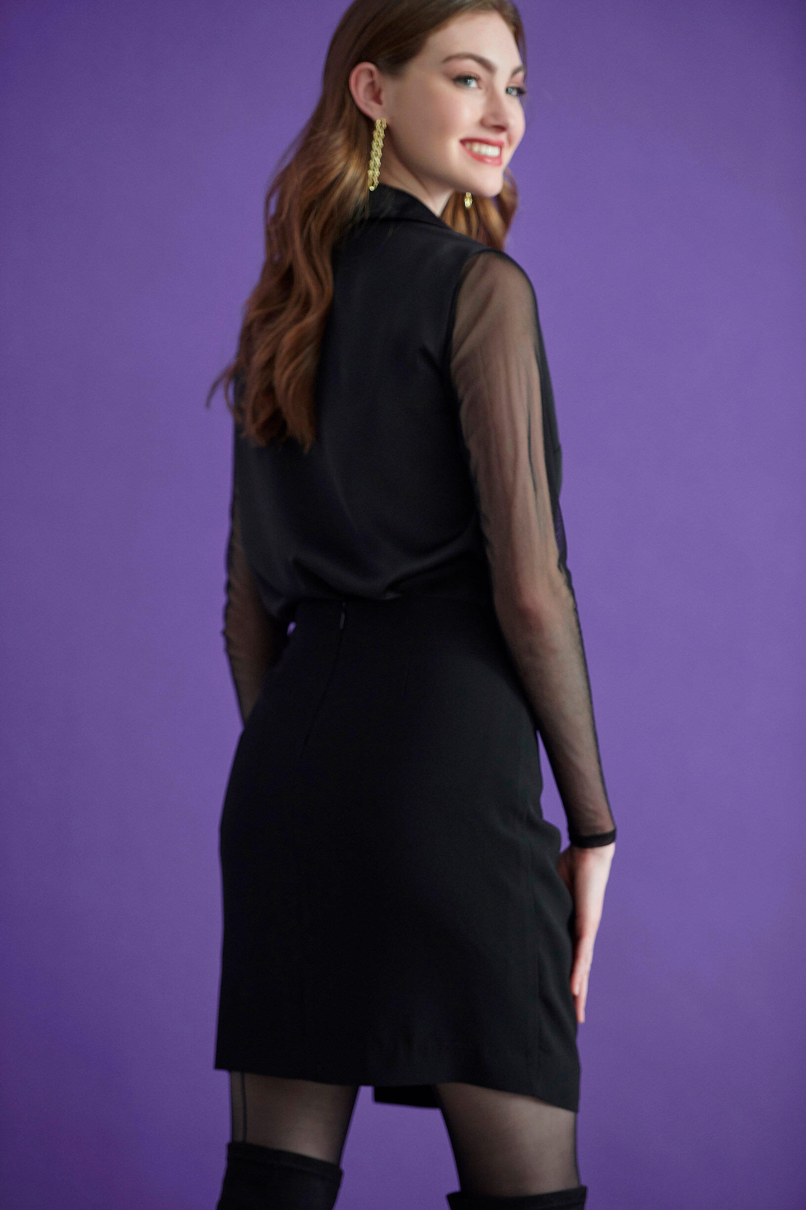 Mini skirt with open pleats at the front. It has a small slit at the leg and inner lining for a better fit. Closing with a hidden zipper at the back.