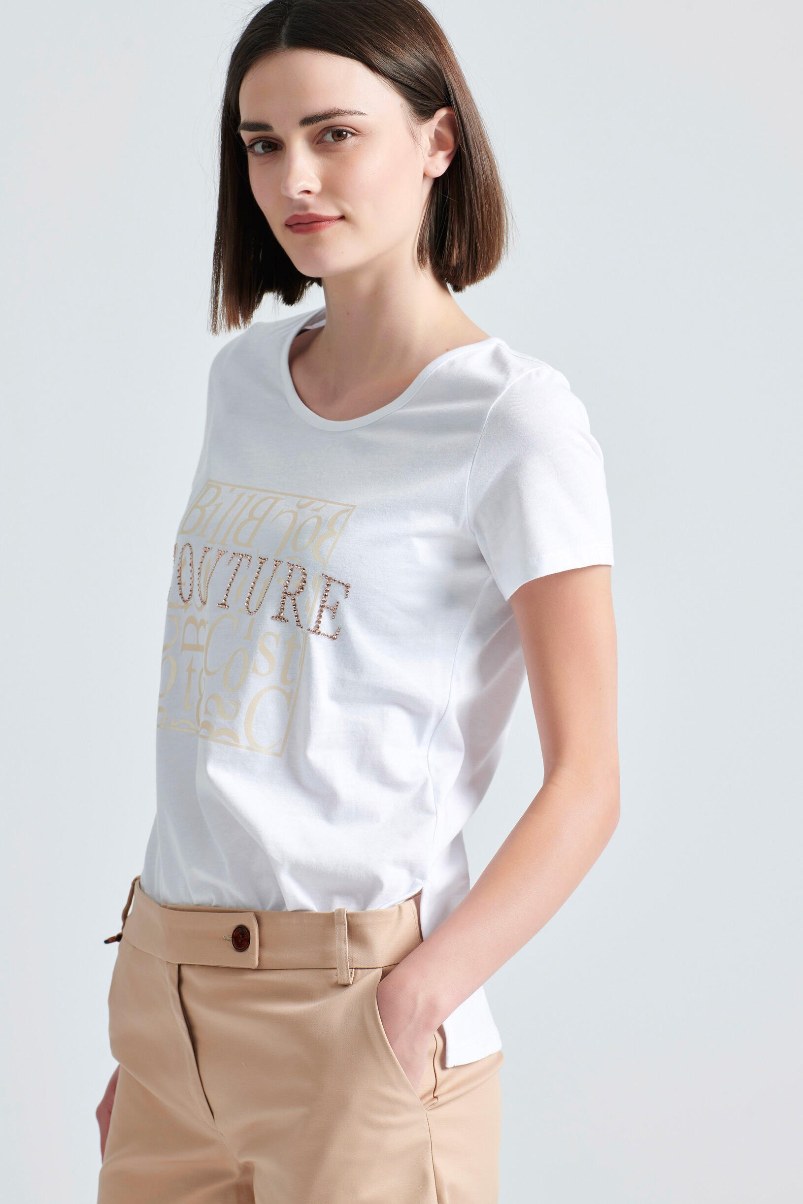 Blouse with gold print SKU 10-120533-0 Description Short sleeve cotton blouse with print and openings on the side. Synthesis 100% organic cotton