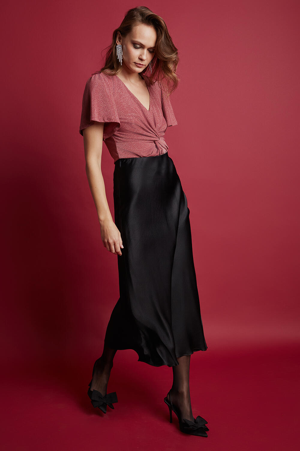 Lurex blouse with lace SKU 10-190093-0 Description Lurex blouse with lace front, V neckline with elasticity. Synthesis 56% nylon 39% lurex 5% spandex