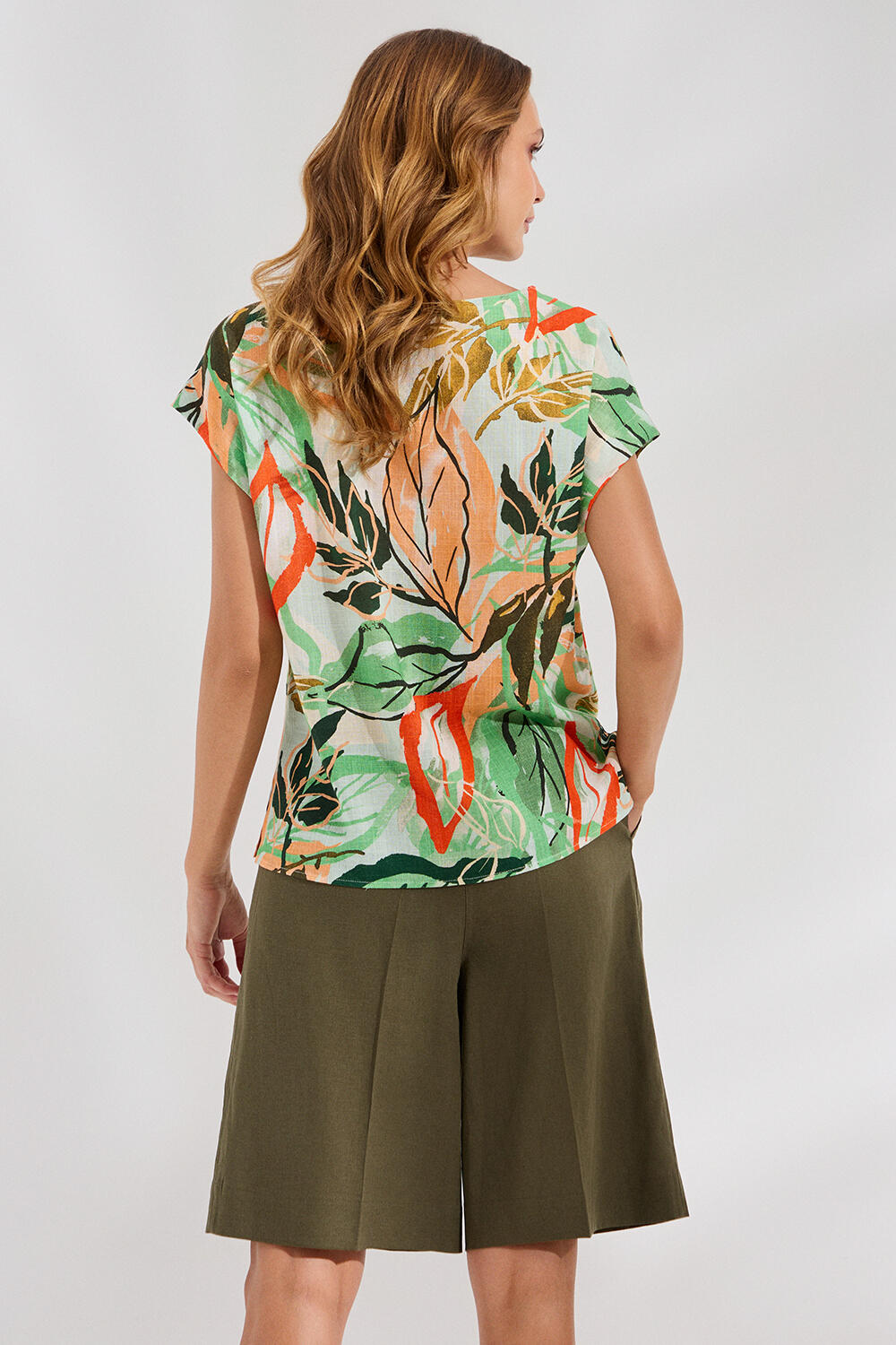 Printed blouse SKU 10-342181-0 Description Blouse printed with cotton and linen, in an open line. Synthesis 49% cotton 41% viscose 10% linen