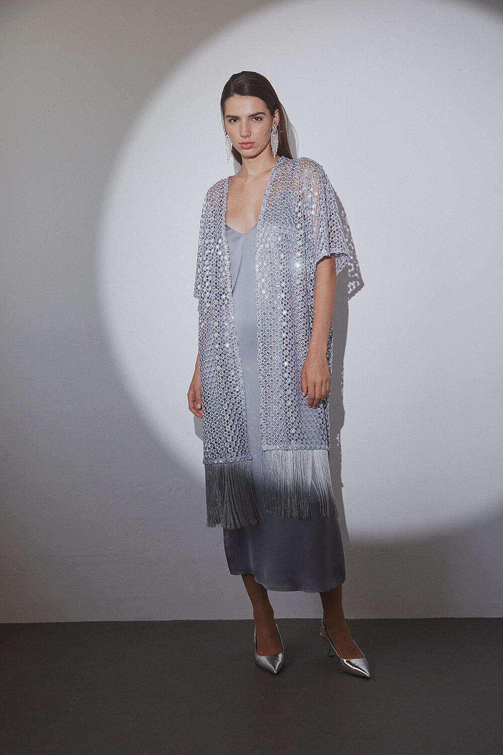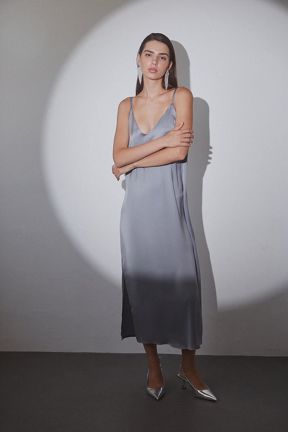 Satin lingerie dress SKU 10-050413-0 Description Dress in lingerie style, satin texture, with V opening on the neckline and back. Thin strap and small side opening. Synthesis 100% polyester