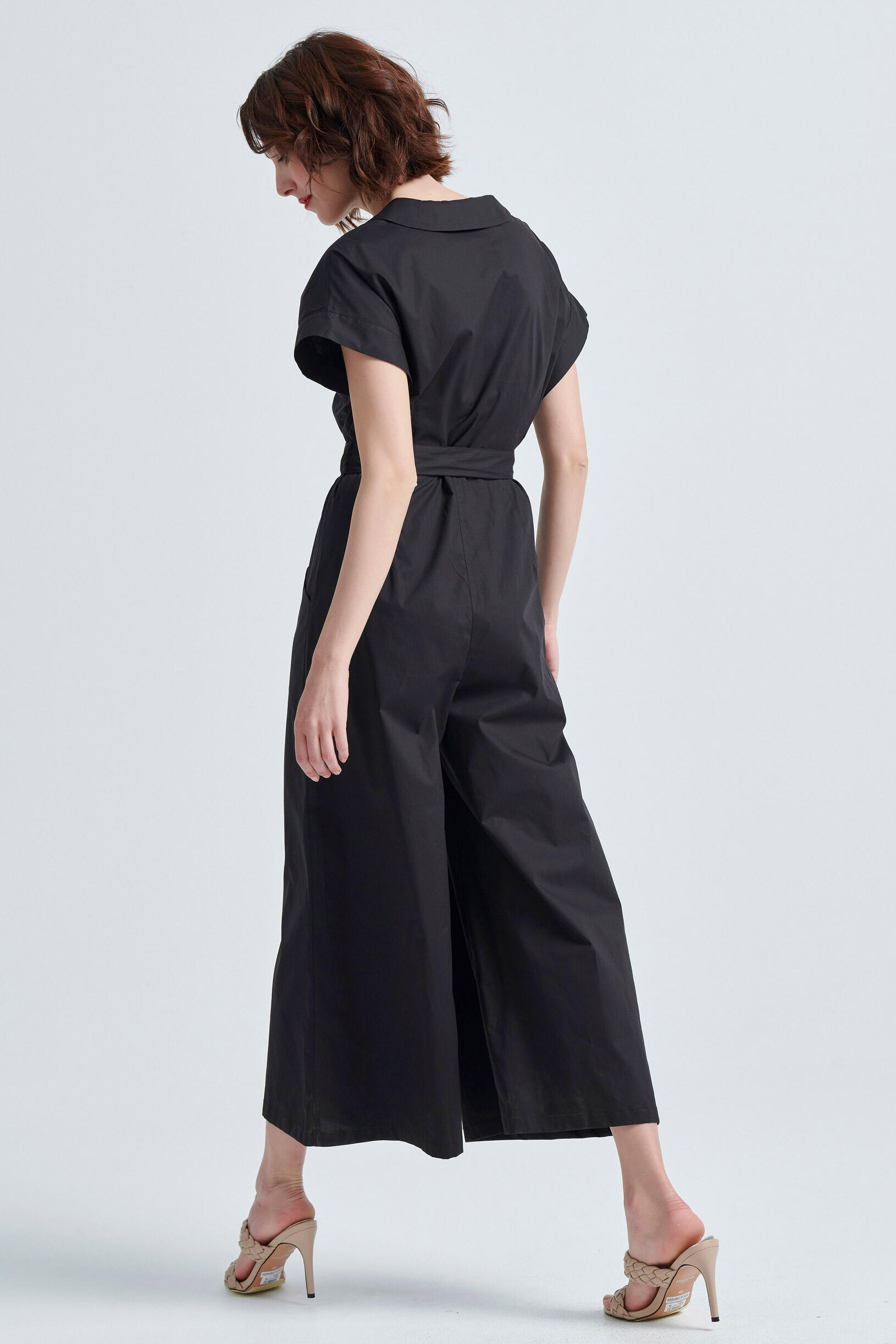 Cropped overalls SKU 10-180212-0 Description One-piece suit with lapel collar, detachable belt of the same fabric with metal ring, front pockets, zipper closure at the front. Synthesis 100% cotton