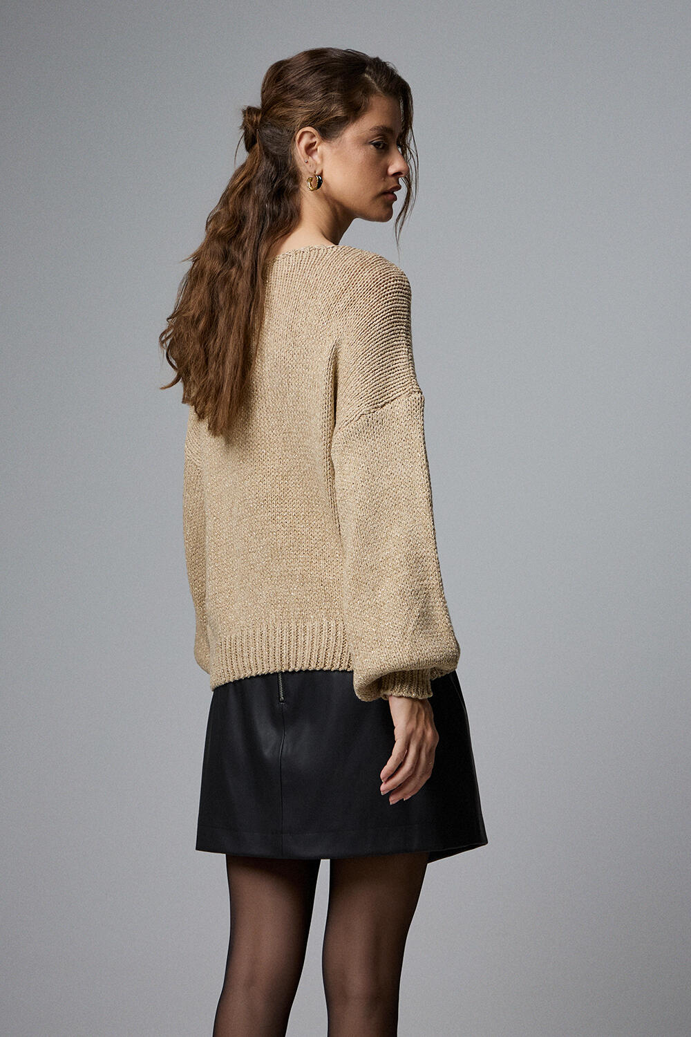 Knitted blouse with gold thread SKU 20-131342-0 color: Beige Beige Brown Brown Black Black size: O/S Size chart Πλεκτά και ζακέτες' data-variation='Πλεκτή μπλούζα με χρυσοκλωστή - ΜΠΕΖ, O/S'> Price €19.00Catalog price €67.90-72% Can't find your size?Clickhere. Description V-neck knitted blouse with gold details. Synthesis 55% polyester 20% lurex 15% wool 5% alpaka 5% viscose
