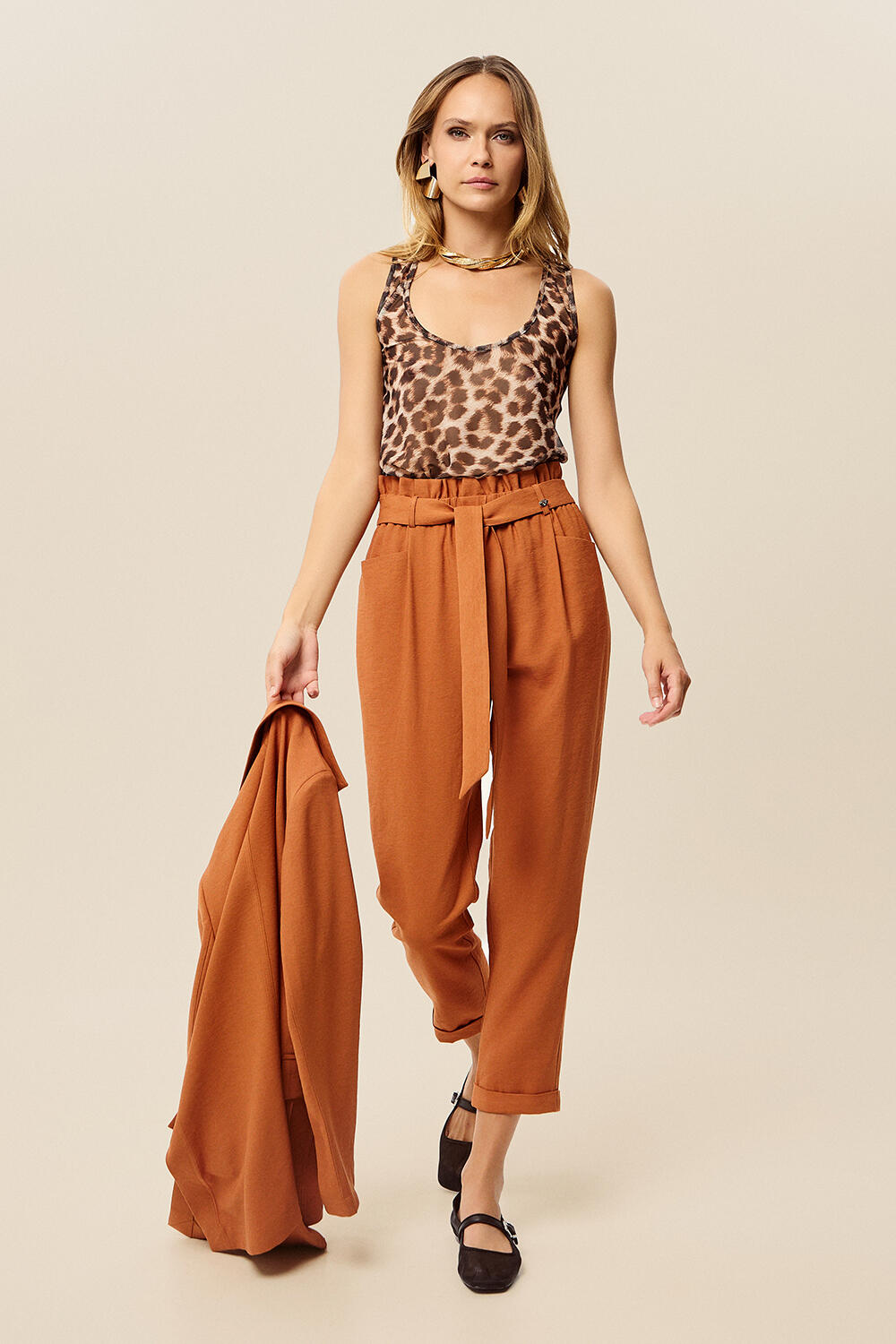 High-waisted trousers with belt