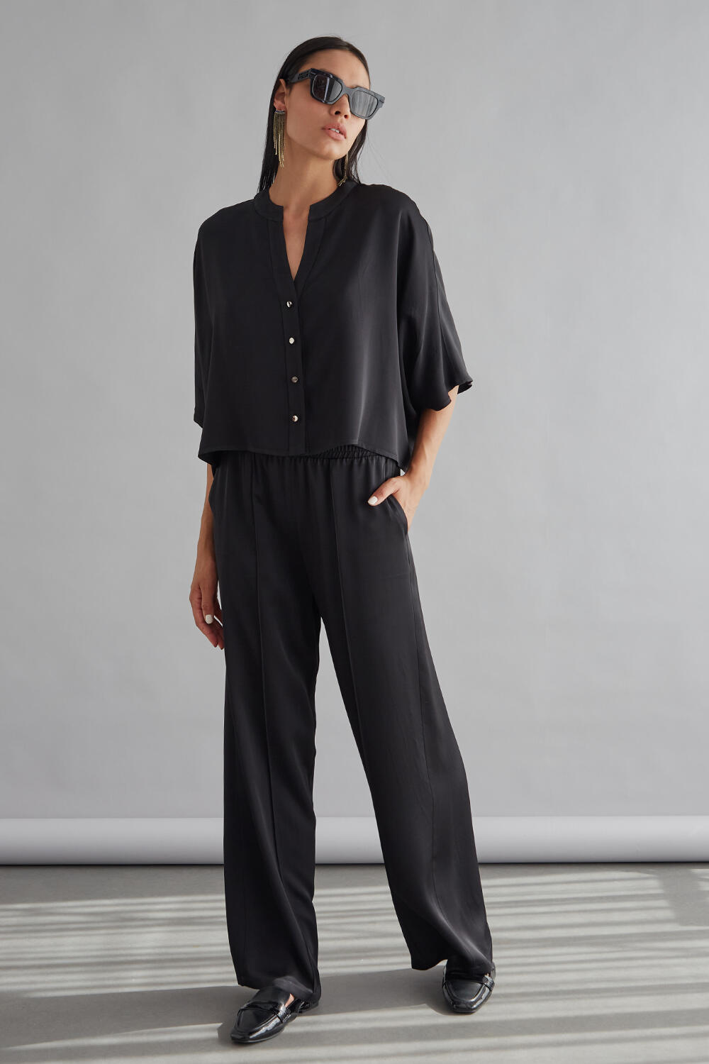 Satin pants SKU 10-050411-0 Description Satin trousers with an elasticated waist and side pockets. Combine it with the 10-050417-0 blouse for a total satin look. Synthesis 52% viscose ecovero 48% rayon