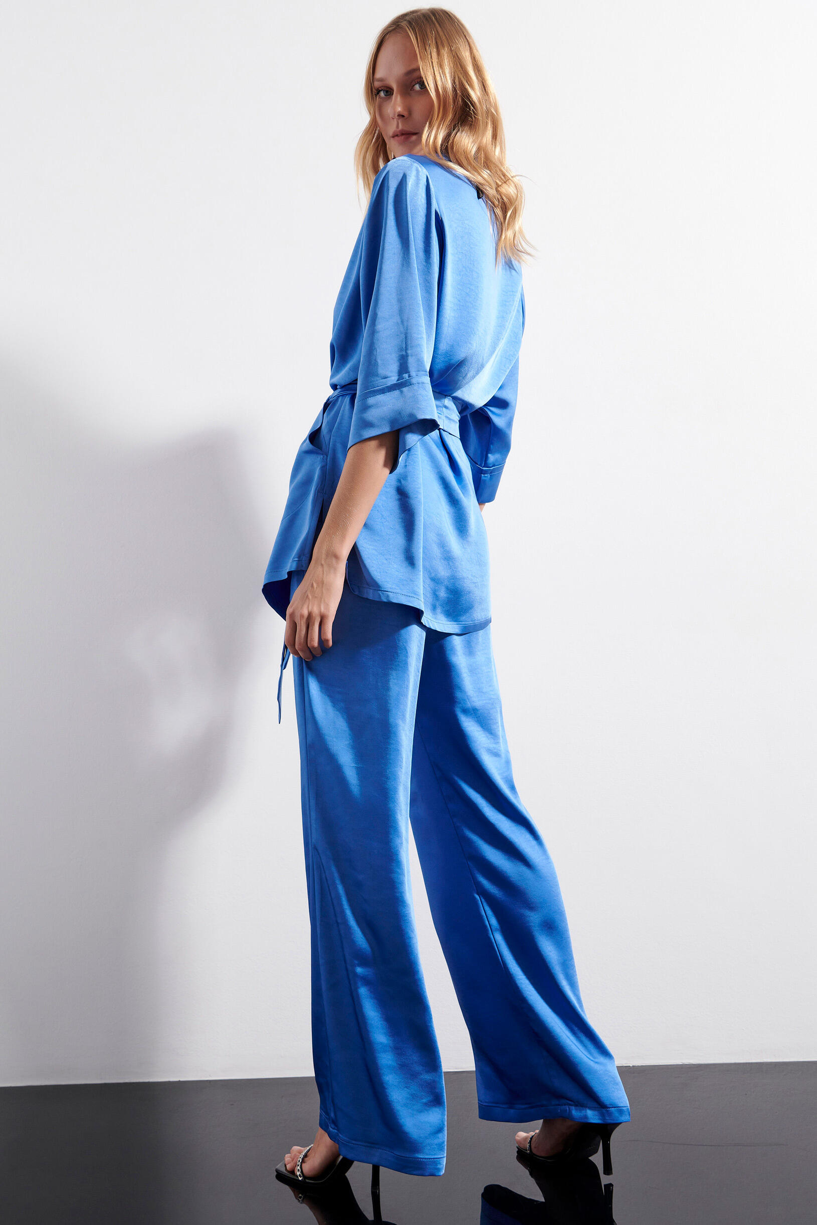 Satin look trousers