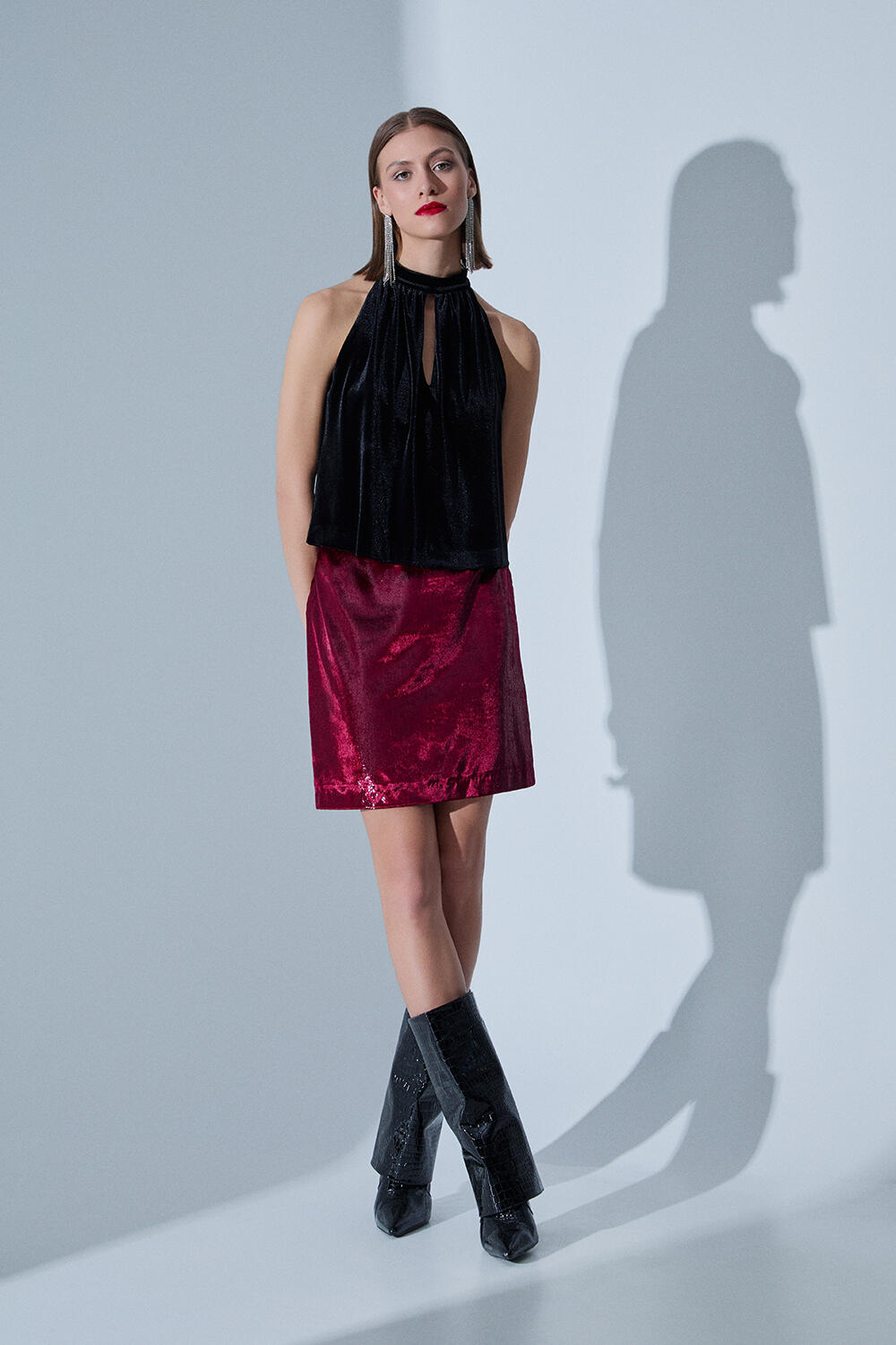 Mini skirt SKU 10-210151-0 color: Black Black Burgundy Burgundy size: S M L XL Size chart Φούστες' data-variation='Φούστα mini - ΜΑΥΡΟ, S'> Price €25.00Catalog price €72.00-65% Can't find your size?Clickhere. Description Mini skirt in textured velvet with lyrex elements. Combine it with jacket 10-210139-0 for a complete glam look. Synthesis 100% polyester