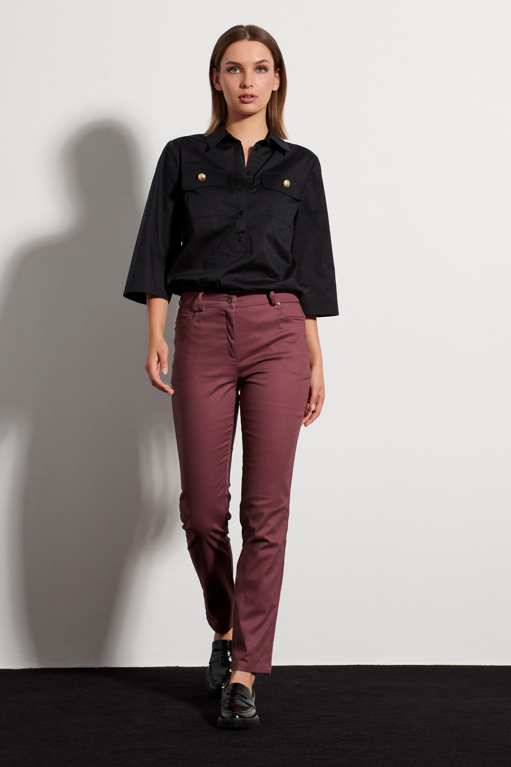Pants in a straight line SKU 10-060736-0 Description Trousers in soft cotton fabric with five pockets. Straight leg and seamed hem. It closes in front with a button. Synthesis 97% cotton 3% spandex