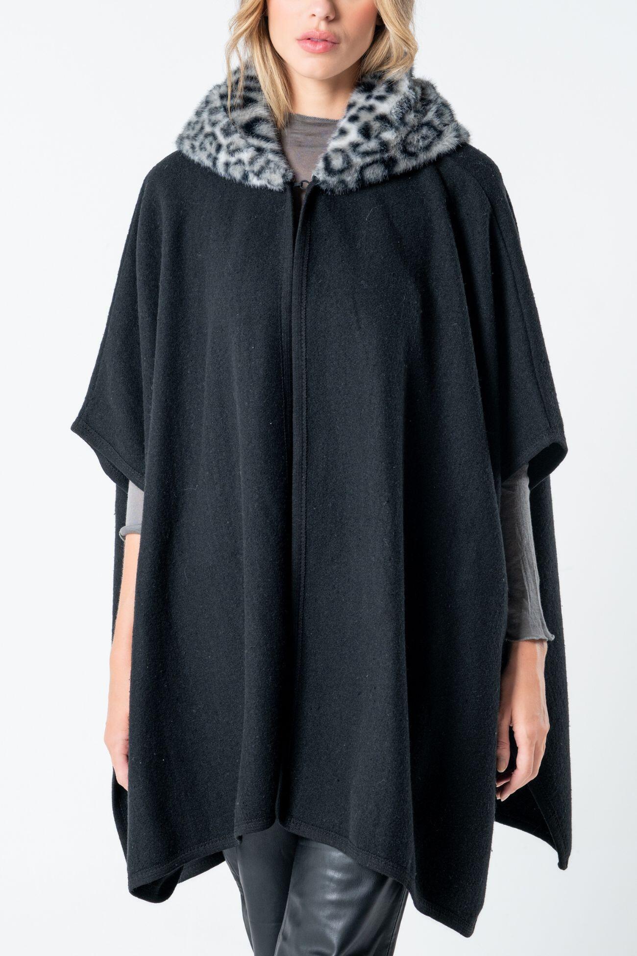 Elegant cape with a hood and faux fur detail. Warm and practical, it offers comfort and style for cold days.