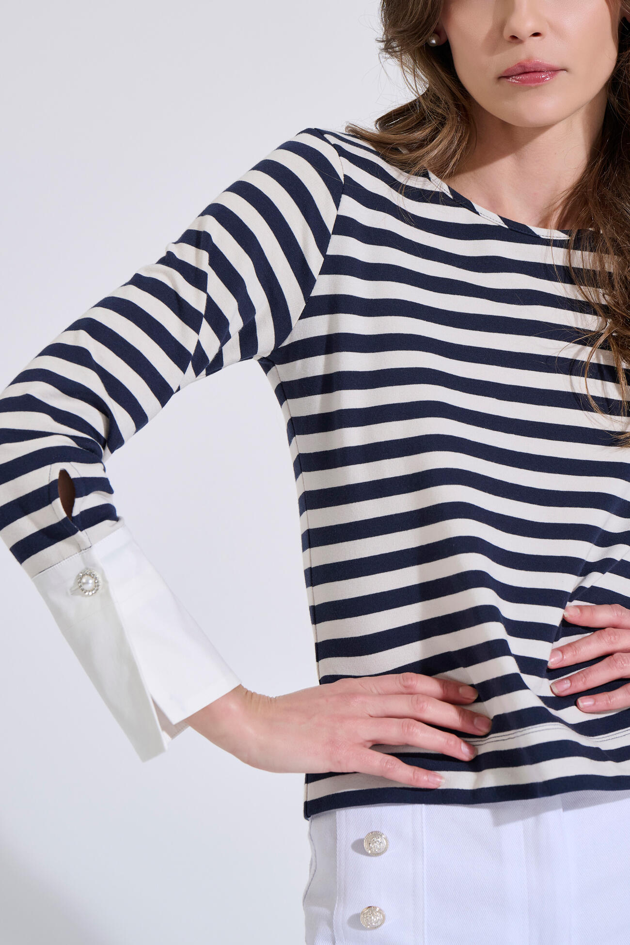 Cotton Breton Top with Poplin Cuffs & Decorative Button