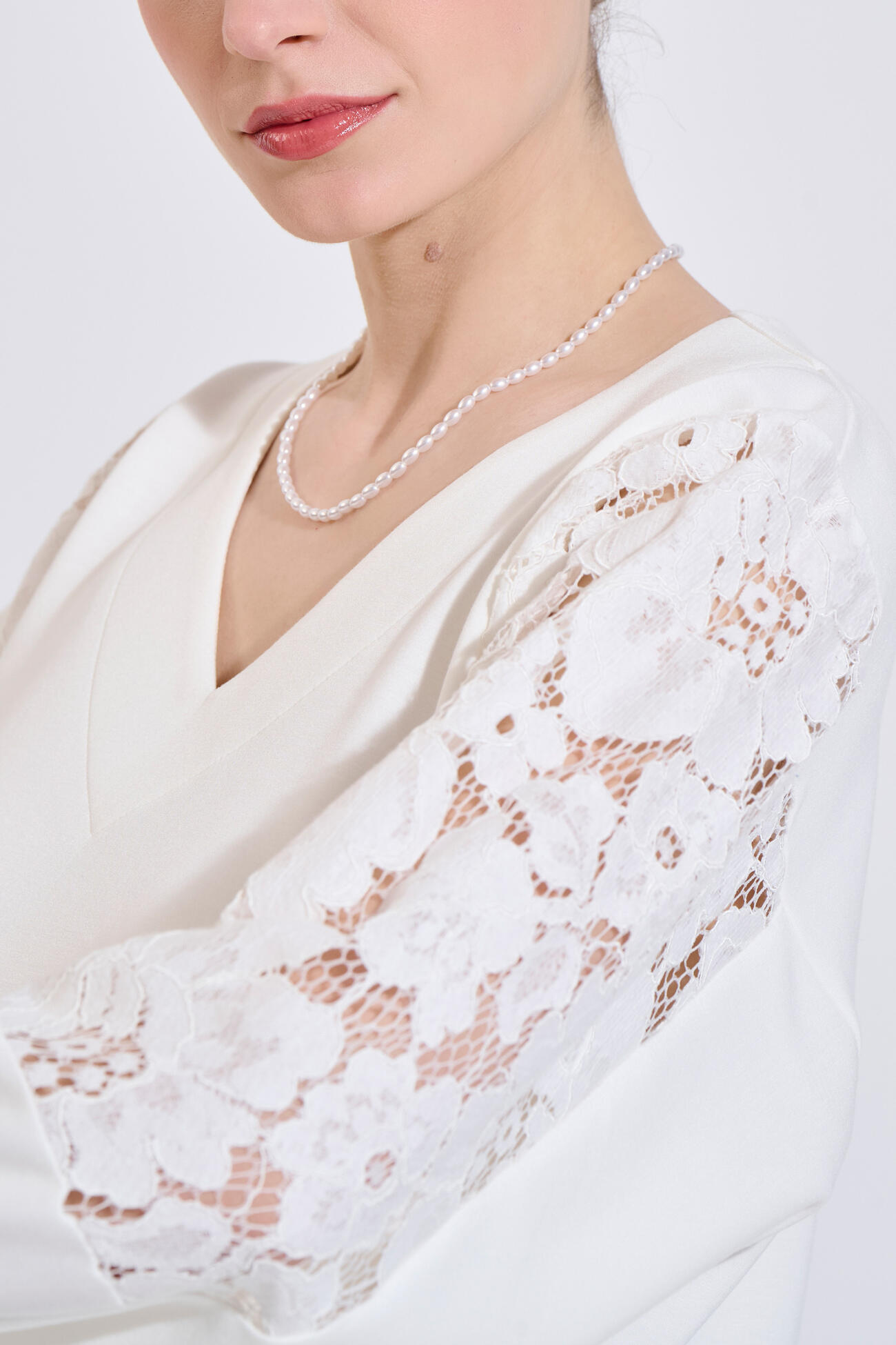 Relaxed-fit blouse with V-neckline and lace sleeves