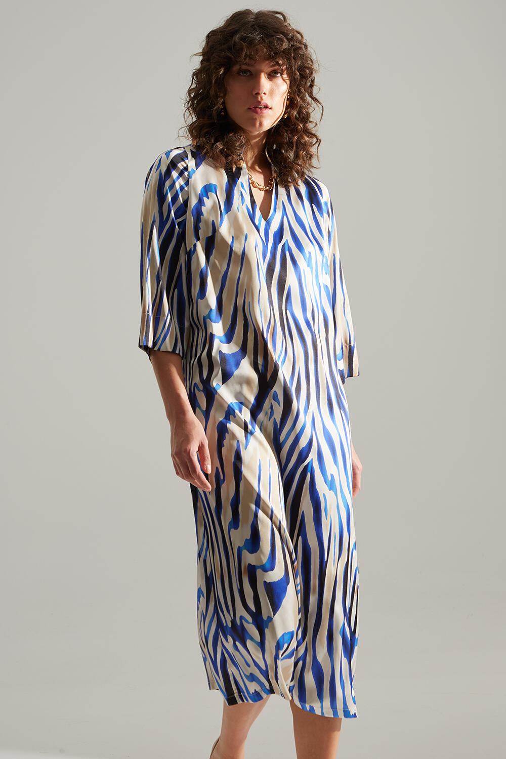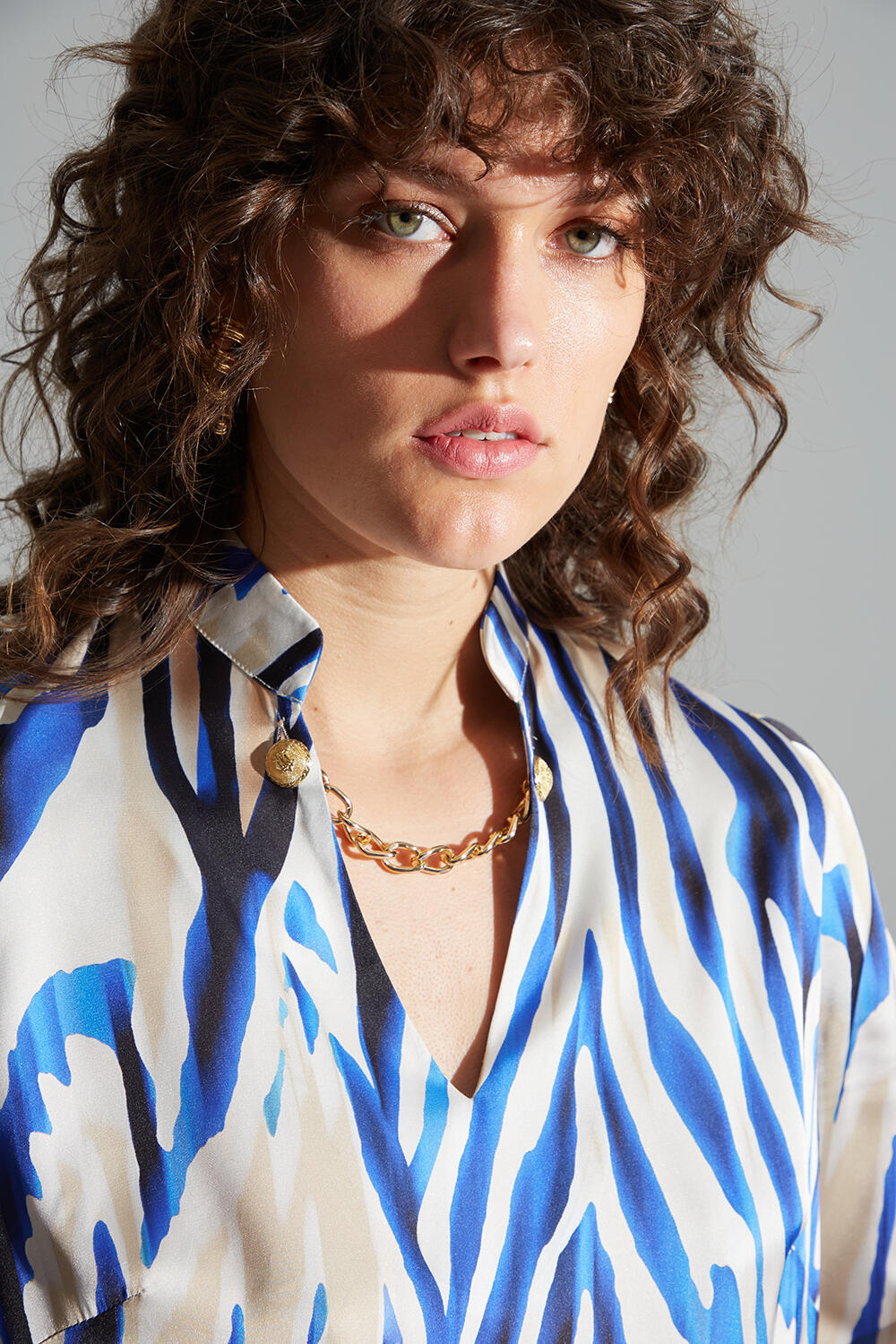 Animal print satin dress SKU 10-342097-0 Description Animal print satin dress with decorative chain on the neckline. In a straight open line. Synthesis 97% polyester 3% elastane