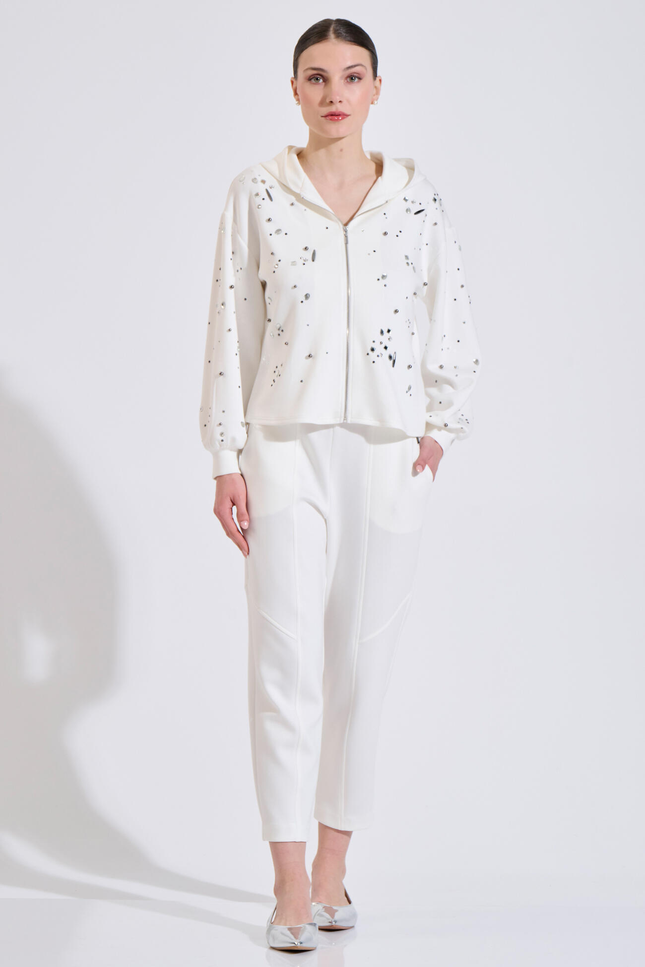 Relaxed-fit sweatshirt jacket with stone embellishments