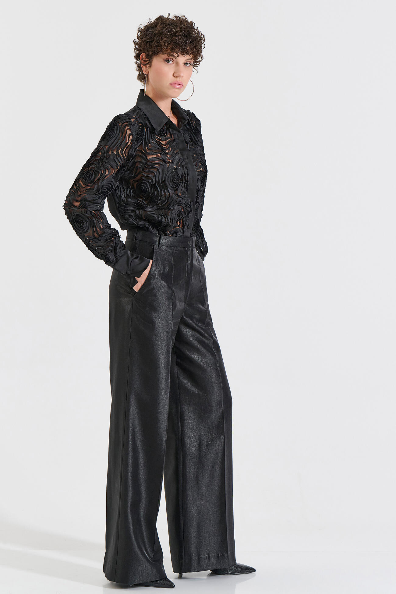 Elegant satin trousers in a wide-leg silhouette, featuring a subtle sheen that elevates every look. Their fluid fabric offers comfort and graceful movement, while the minimal cut makes them ideal for day-to-night styling.