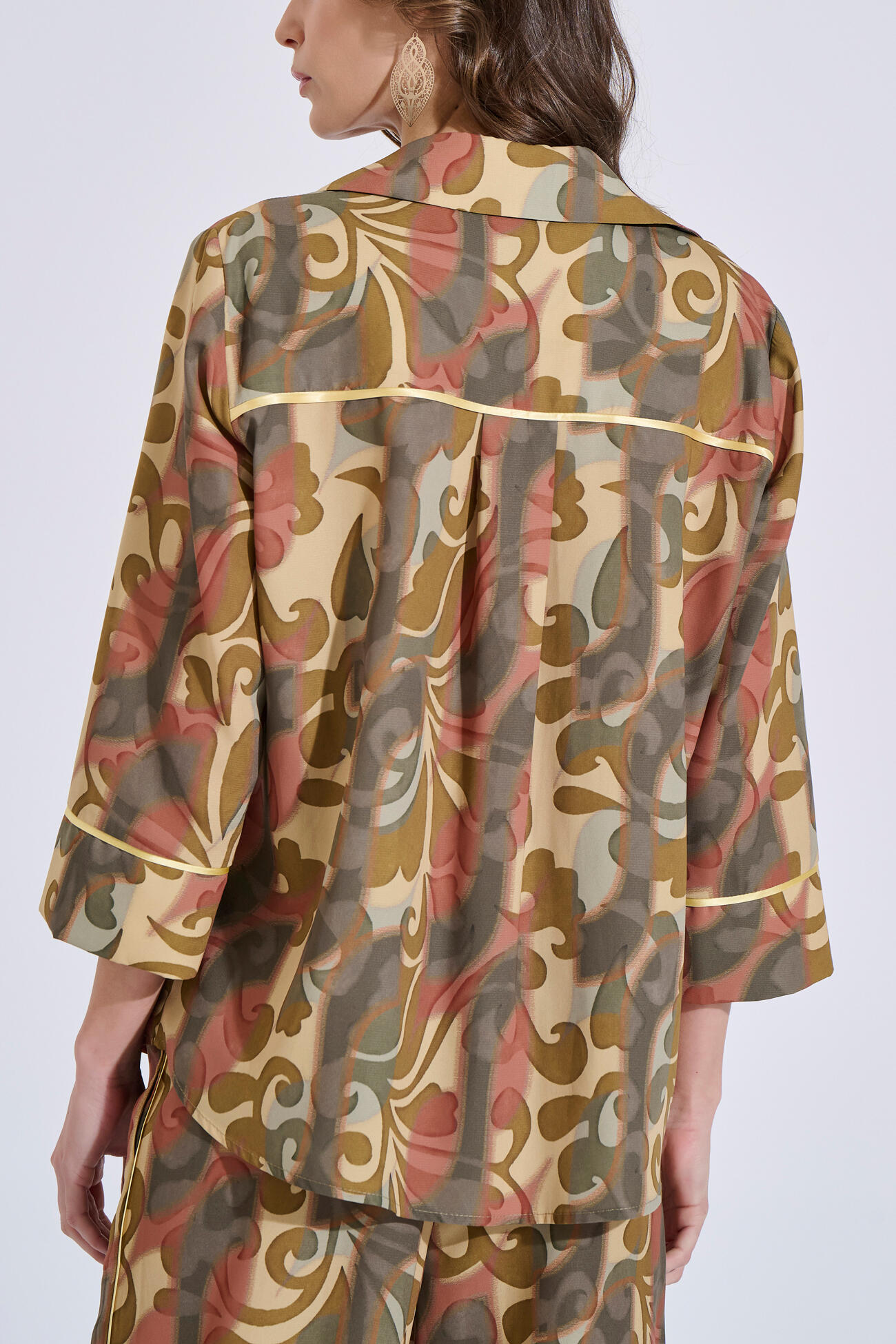 Printed shirt in a lightweight fabric with a classic collar and front closure with gold buttons. Features 3/4 sleeves with subtle trim detail at the cuffs. Can be paired with the trousers 10-342490-0 for a complete set.