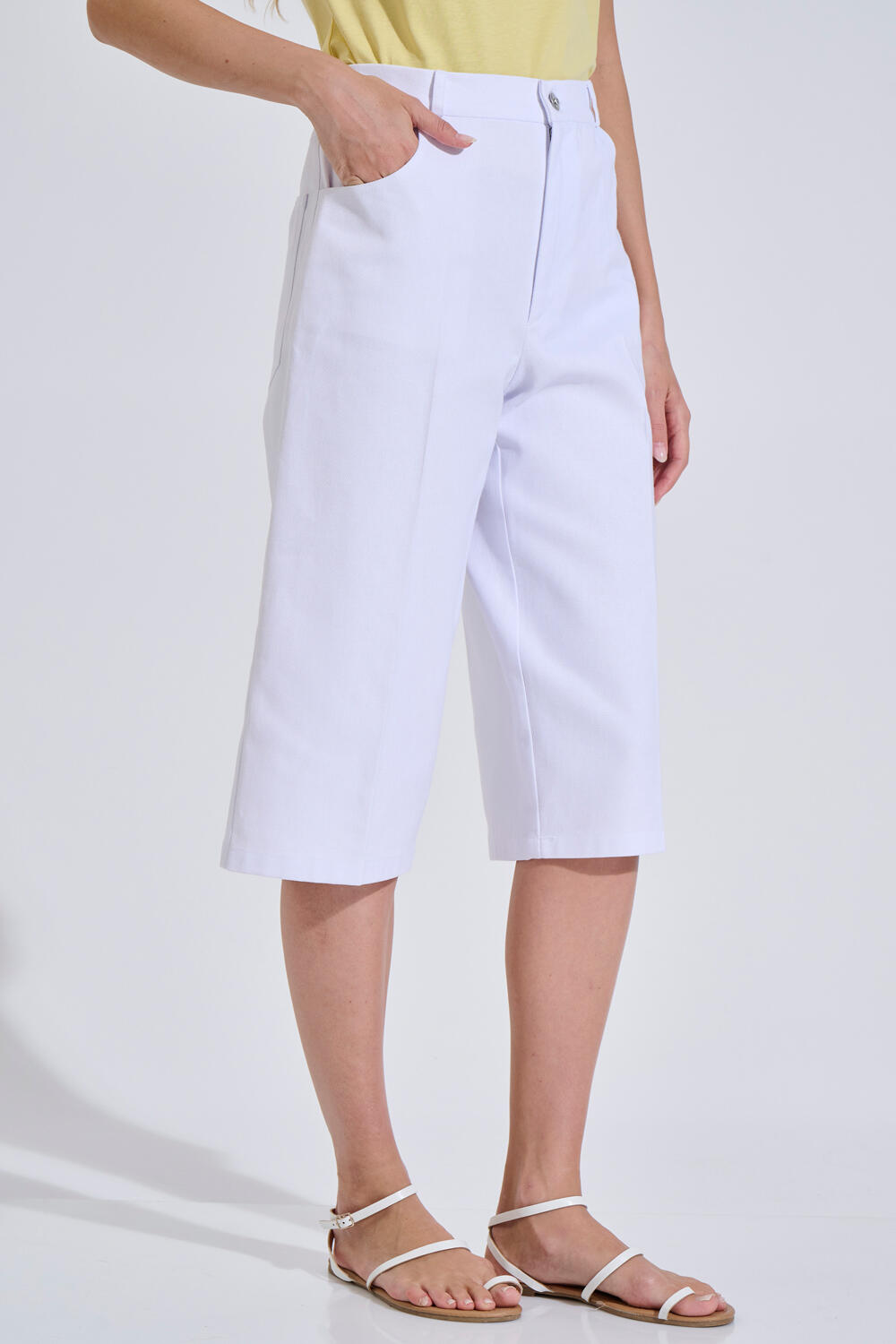 Cotton denim bermuda shorts in a straight fit. Features a front zip and button closure, side pockets, and back pockets.