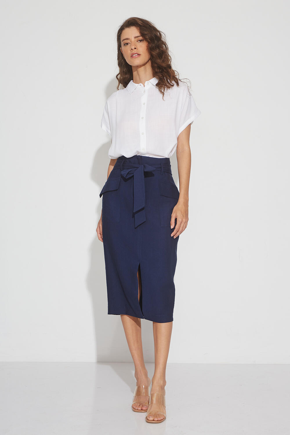 Pencil skirt with pockets and belt SKU 10-350429-0 Description Midi pencil skirt, with decorative front pockets and detachable belt. Small opening at the front. Synthesis 83% rayon 17% nylon