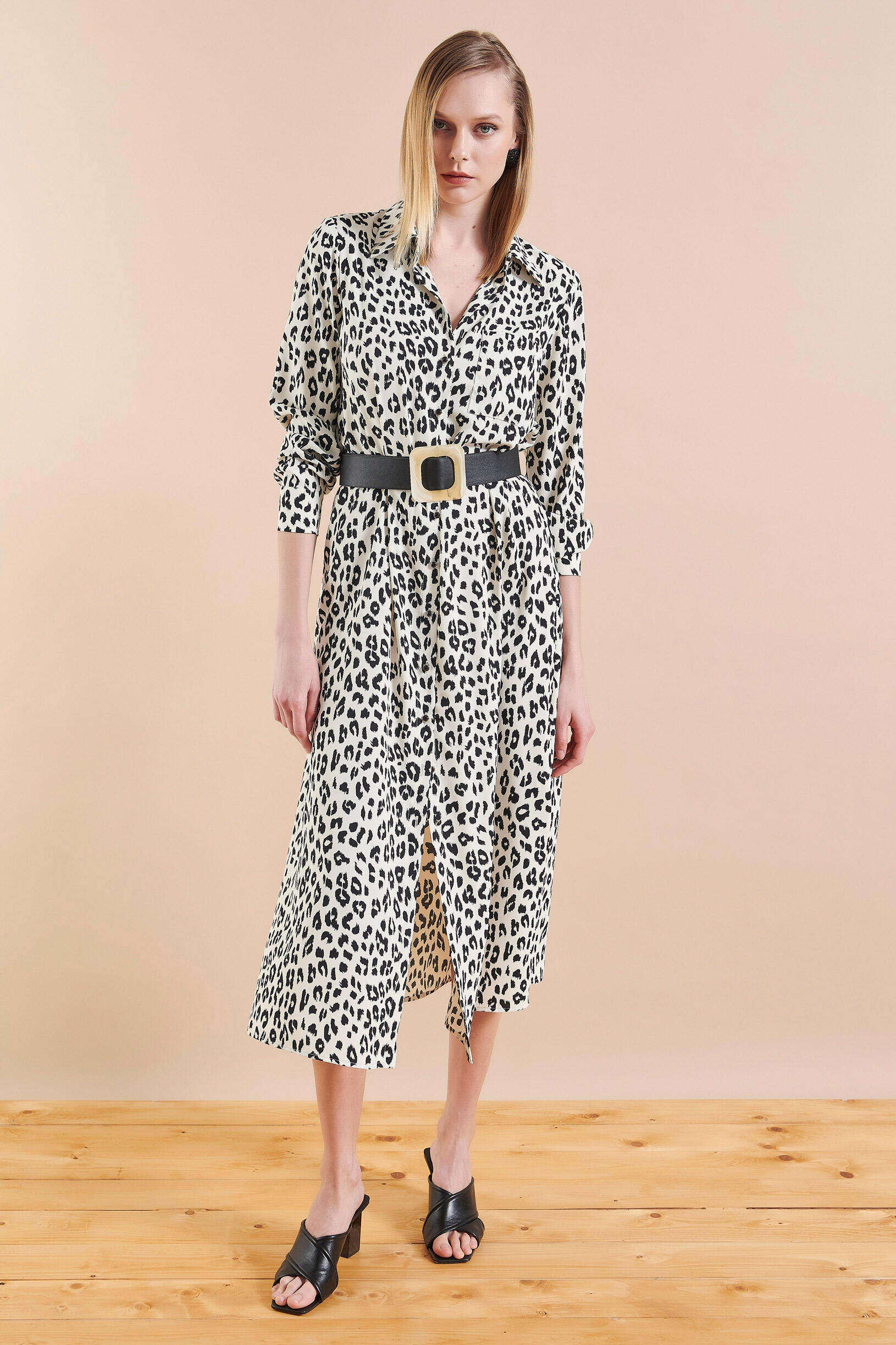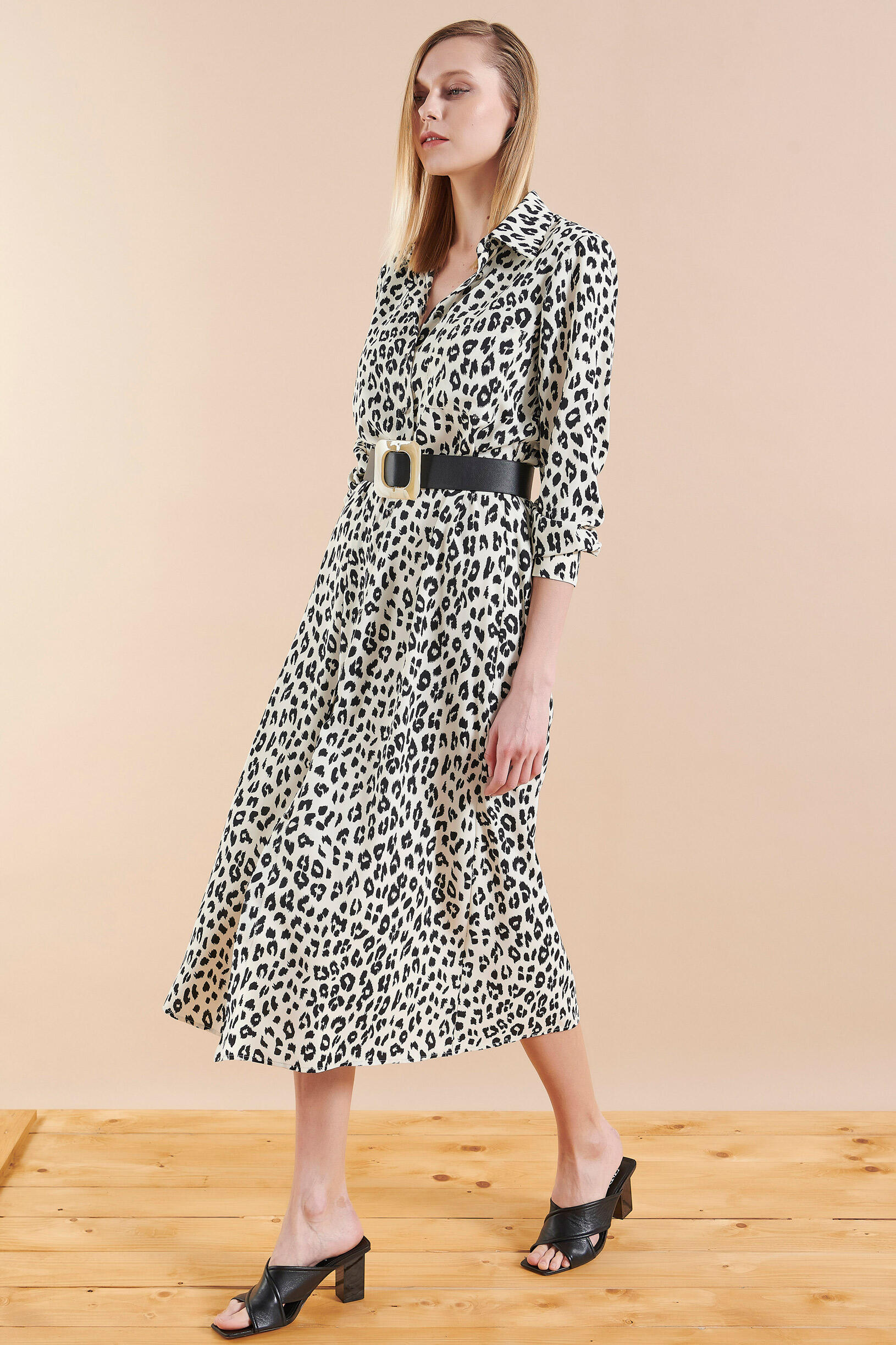 Φόρεμα με animal print μοτίβο,Διαθέτει γιακά και κουμπιά μπροστά,αποσπώμενη ζώνη ίδιου υφάσματος.Συνδυάστε το με ζώνη της αρεσκείας σας.