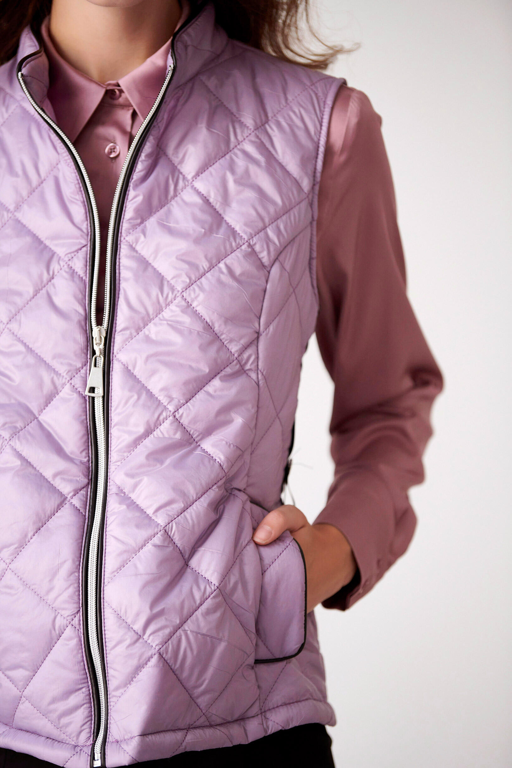 Καπιτονέ γιλέκο Κωδικός 10-380020-0 Περιγραφή Αμάνικο καπιτονέ μπουφάν με διακοσμητική φάσα και κουμπί στο πλάι,ρέλι με υφή δερματίνης μπροστά και στις τσέπες,κλείσιμο με φερμουάρ. Σύνθεση 60% polyester 40% nylon