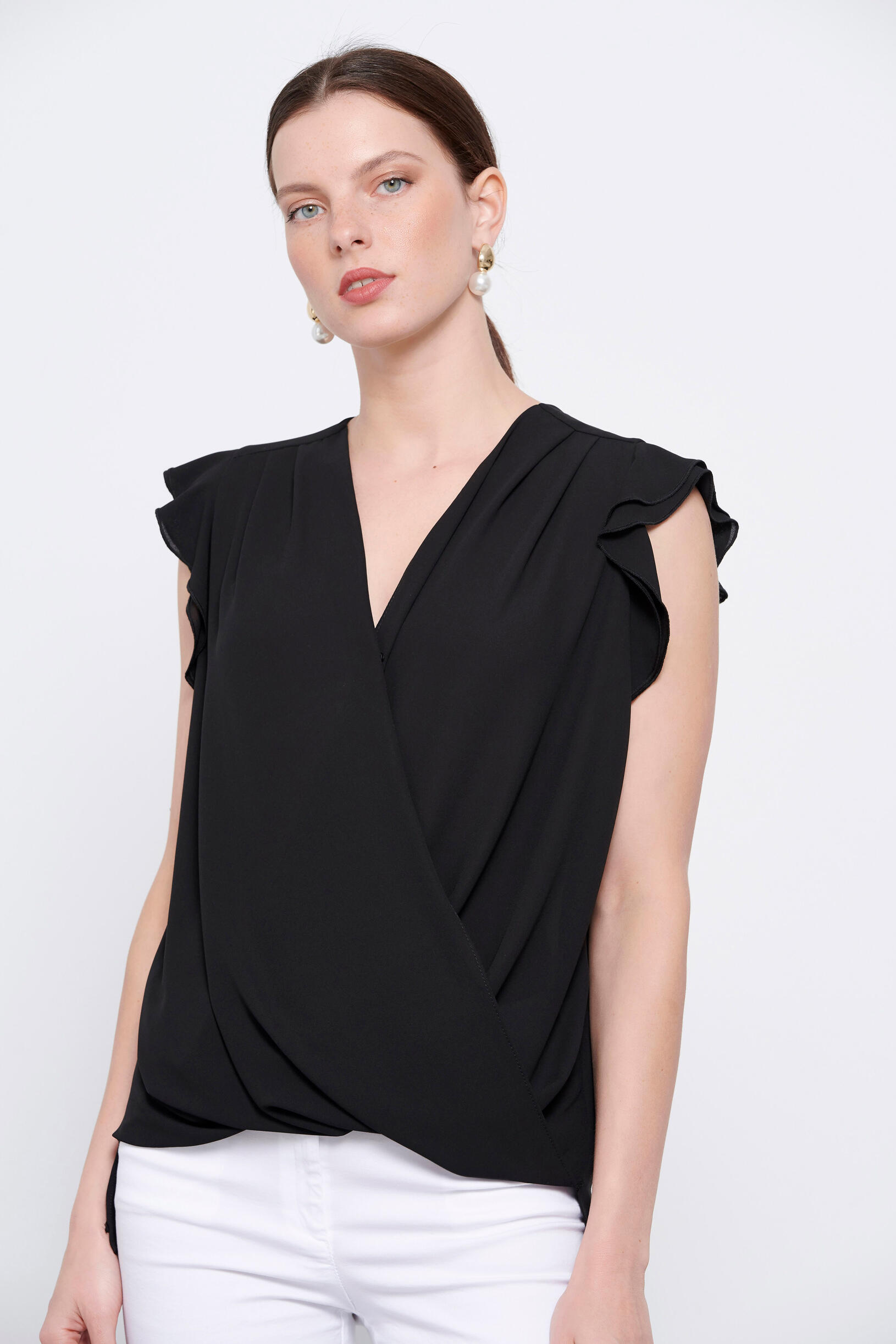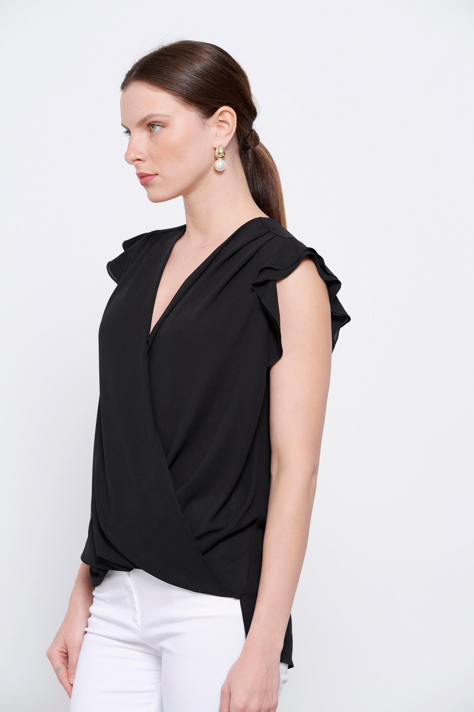 Μπλούζα κρουαζέ με βολάν μανίκια
