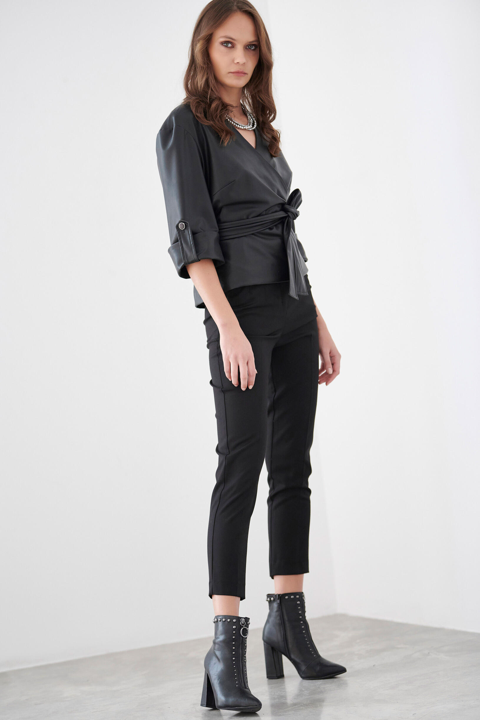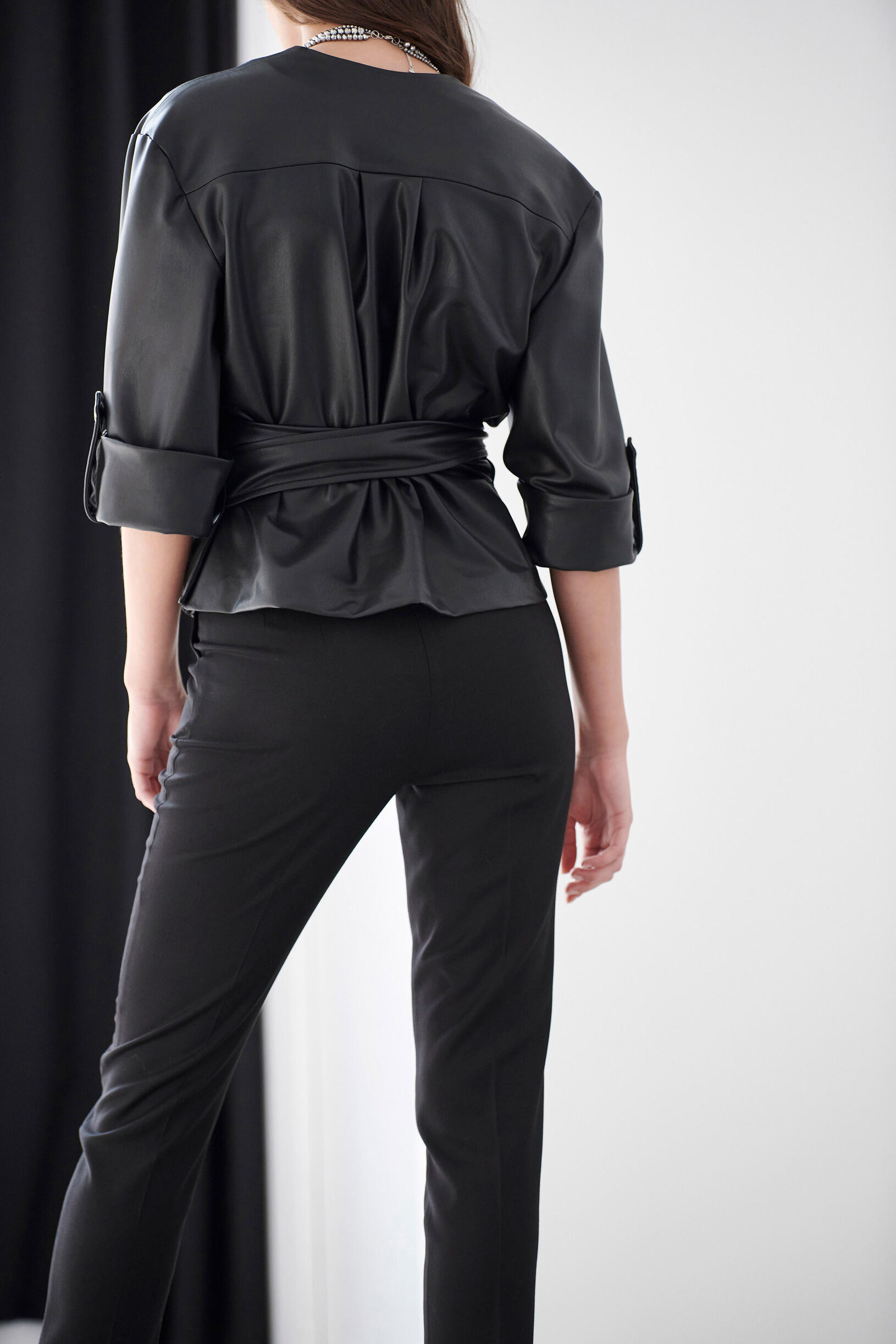Μπλούζα με 3/4 μανίκια.Διαθέτει ενσωματωμένη ζώνη του ίδιου υφάσματος.Συνδυάστε το με παντελόνι ίδιου υφάσματος για ένα total leather look.