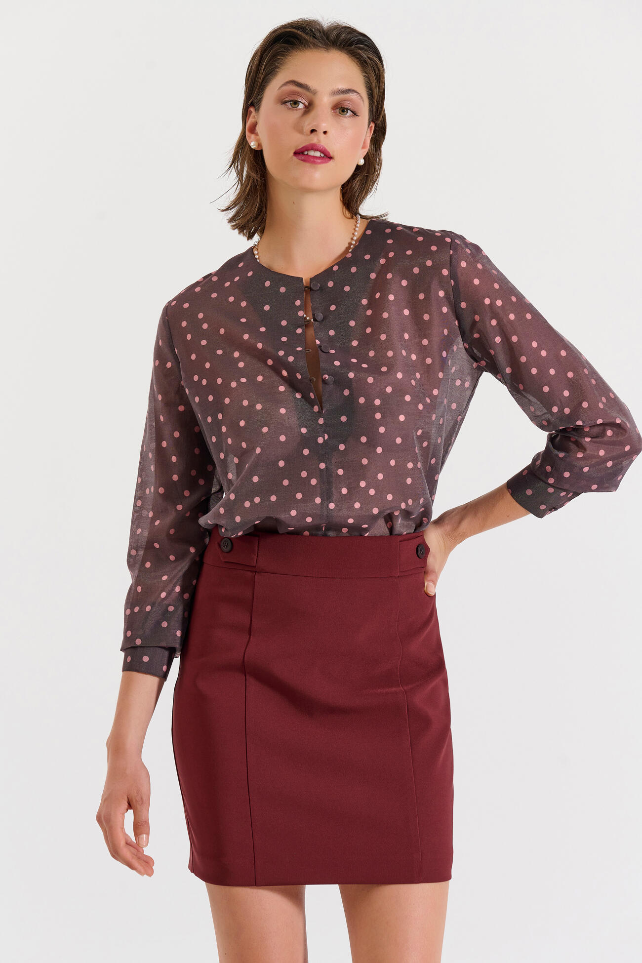 Μπλούζα με πουά μοτίβο Κωδικός 10-310118-0 χρώματα: ΜΑΥΡΟ ΜΑΥΡΟ ΜΠΟΡΝΤΩ ΜΠΟΡΝΤΩ μέγεθος: S M L XL ΜΕΓΕΘΟΛΟΓΙΟ Ρούχα για Καθημερινά Looks' data-variation='Μπλούζα με πουά μοτίβο - ΜΑΥΡΟ, S'> Tιμή 62,30 €89,00 €-30% Δεν βρίσκετε το μέγεθός σας;Πατήστεεδώ. Περιγραφή Μακρυμάνικη μπλούζα με πουά μοτίβο , στρογγυλή λαιμόκοψη και κλείσιμο με κουμπιά μπροστά. Σύνθεση 85% λιοσέλ 15% πολυεστέρας