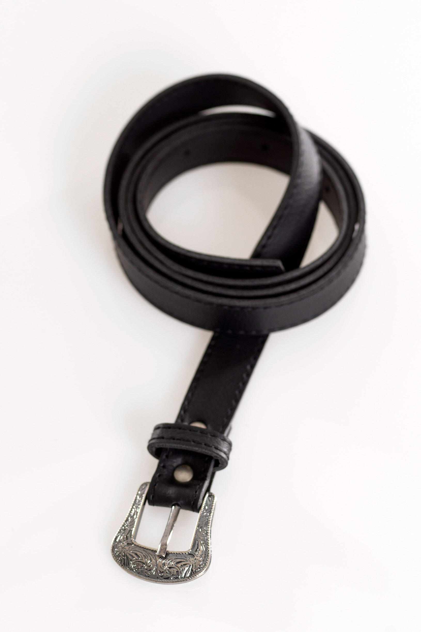 Ζώνη λεπτή Κωδικός 20-012058-0 Περιγραφή Ζώνη δερματίνη λεπτή , ασημί αγκράφα με σκάλισμα Σύνθεση 100 % συνθετικό δέρμα