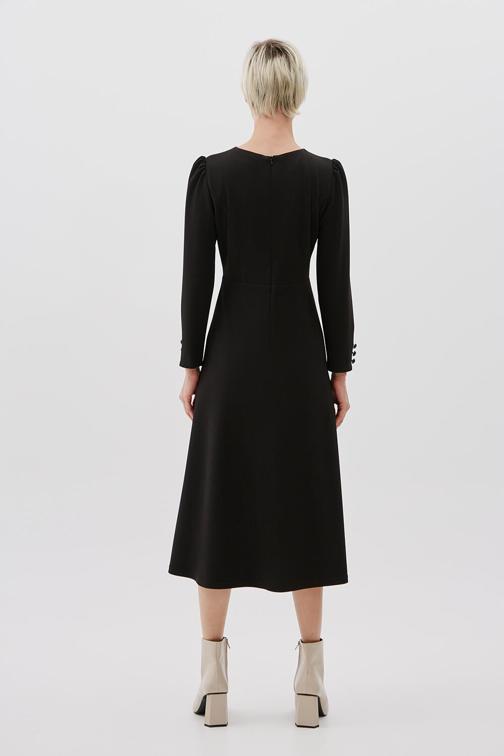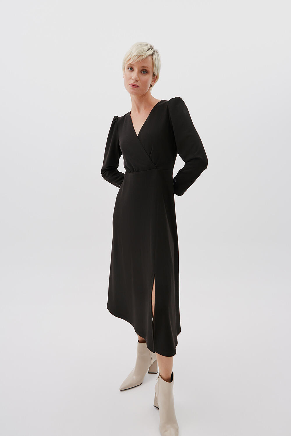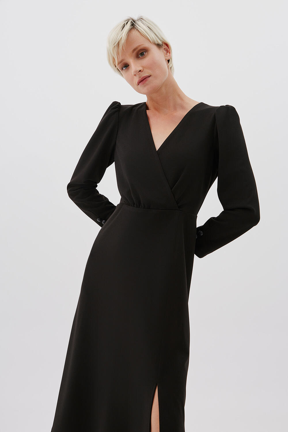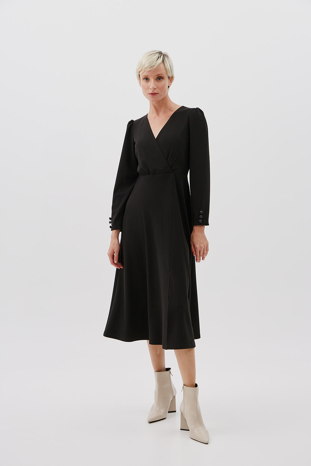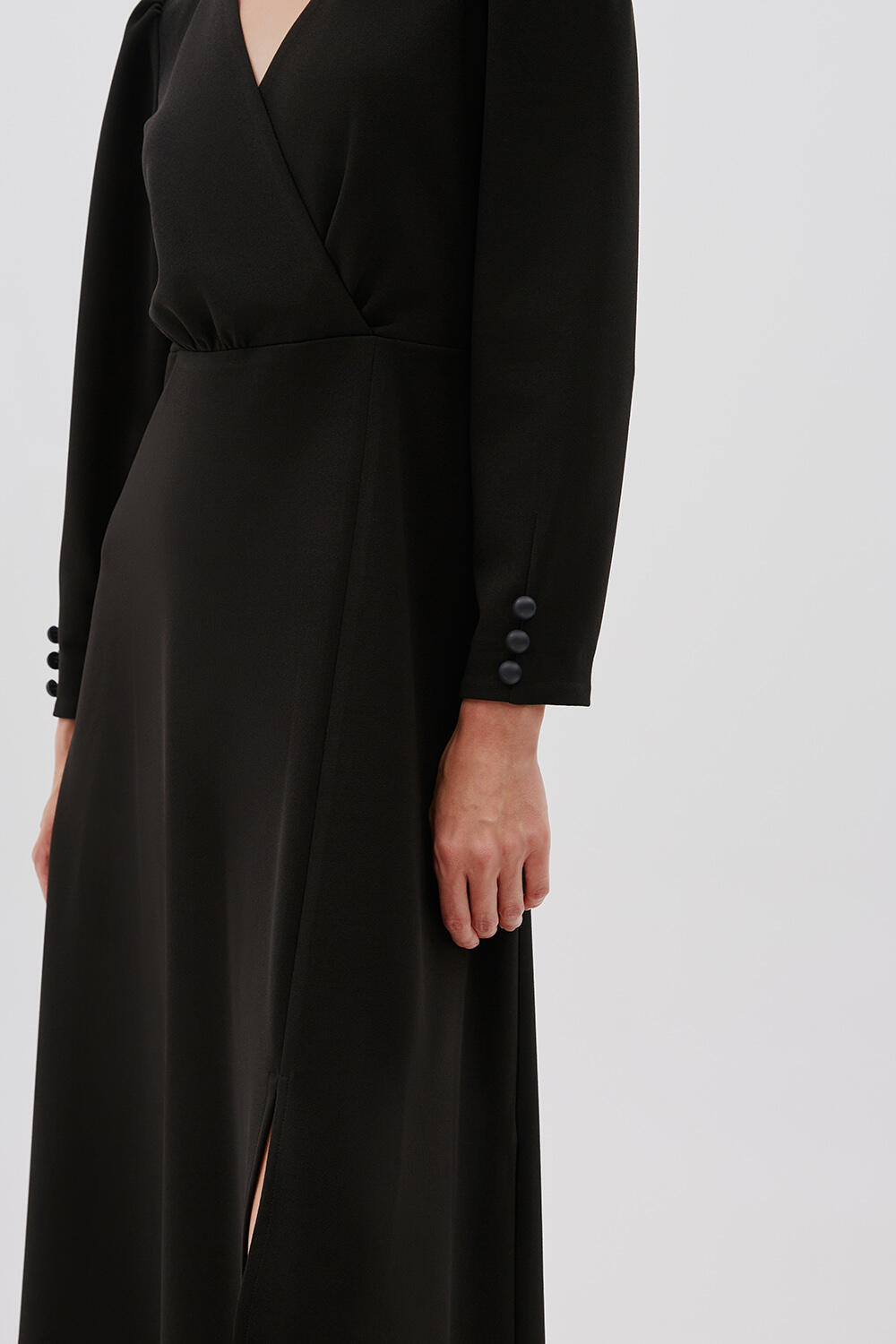 Φόρεμα με V ντεκολτέ Κωδικός 10-030927-0 Περιγραφή Φόρεμα μακρυμάνικο, με κρουαζέ ντεκολτέ με V άνοιγμα. Λεπτομέρεια με κουμπιά στο μανίκι και midi μάκρος. Σύνθεση 95% polyester 5% spandex
