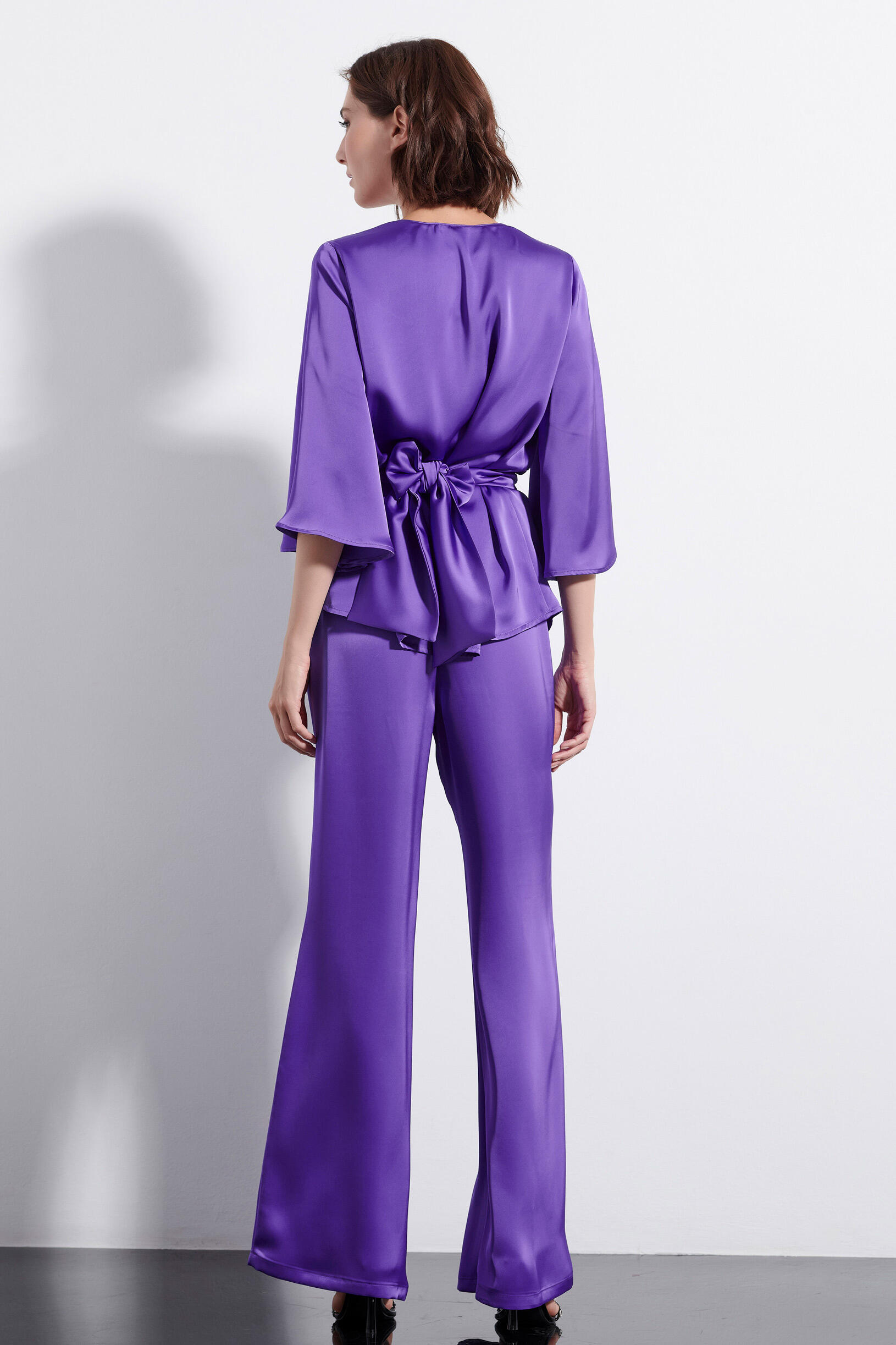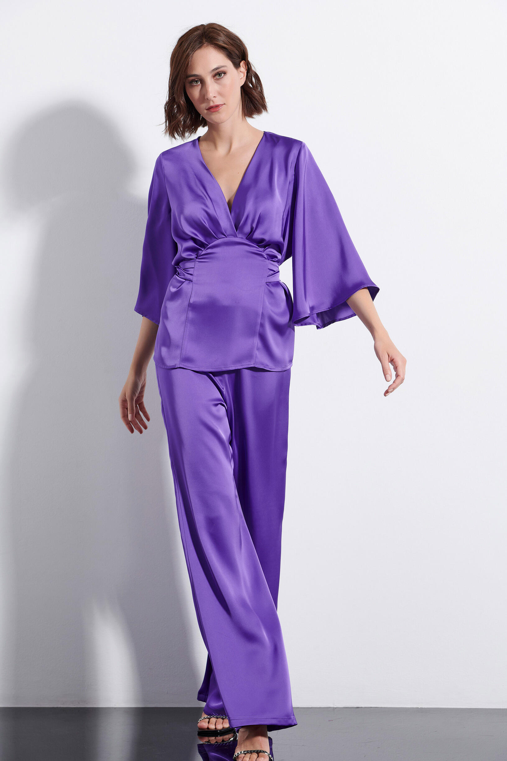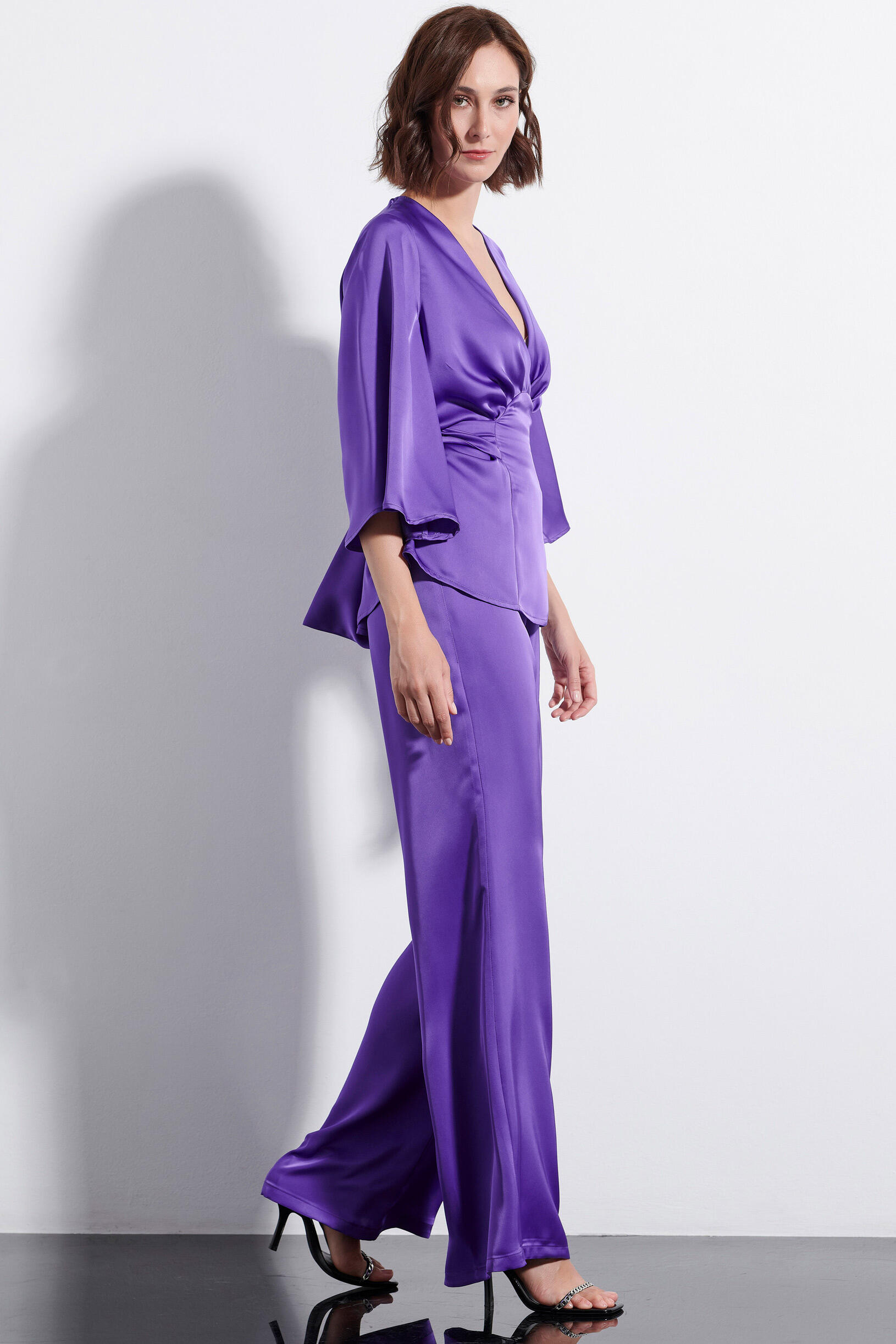 Παντελόνα σε ίσια γραμμή με σατινέ όψη. Έχει μαλακό λάστιχο στη μέση και κλείνει στο πλάι με φερμουάρ. Συνδυάστε τη με την 10-050390-0 μπλούζα ή με την αέρινη 10-150275-0 μπλούζα από μουσελίνα για ένα ολοκληρωμένο look.