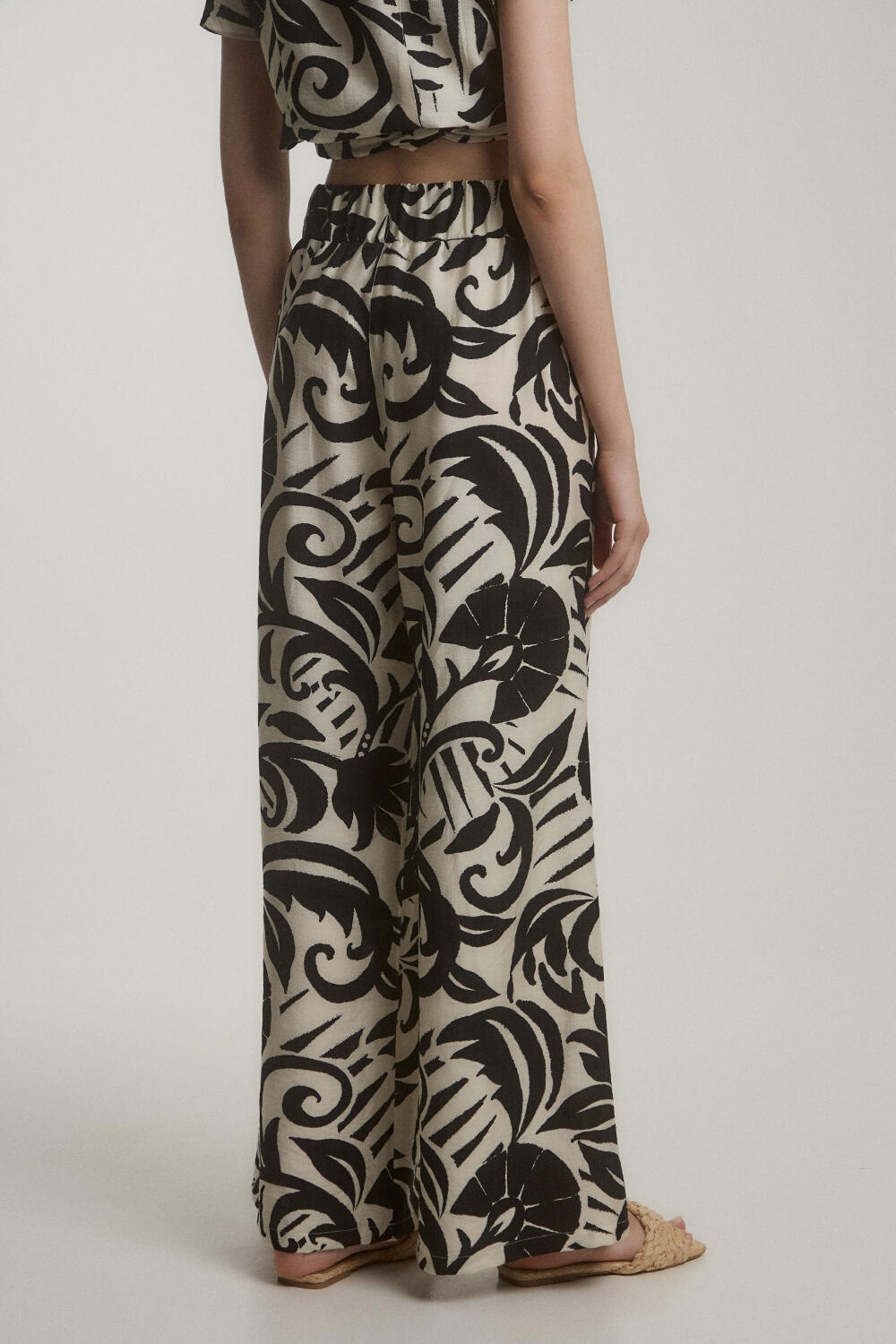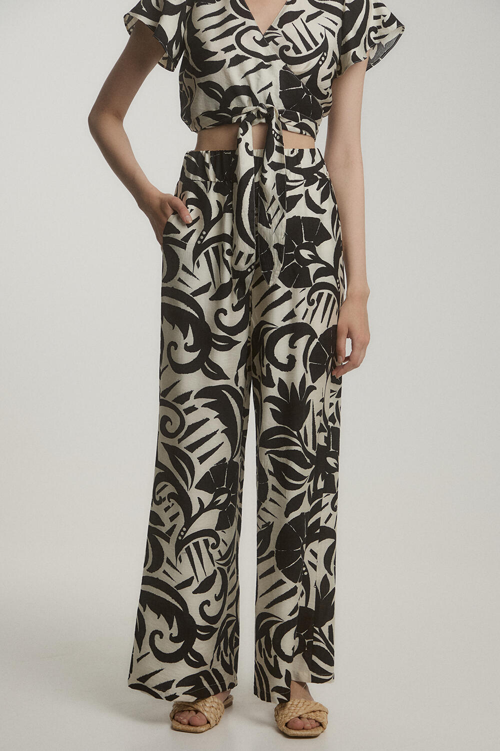 Παντελόνα εμπριμέ με λάστιχο στη μέση για άνετη εφαρμογή και ίσια ανοιχτή γραμμή. Συνδυάστε το με τη 10-342163-0 μπλούζα για ένα ολοκληρωμένο και καλοκαιρινό σύνολο.