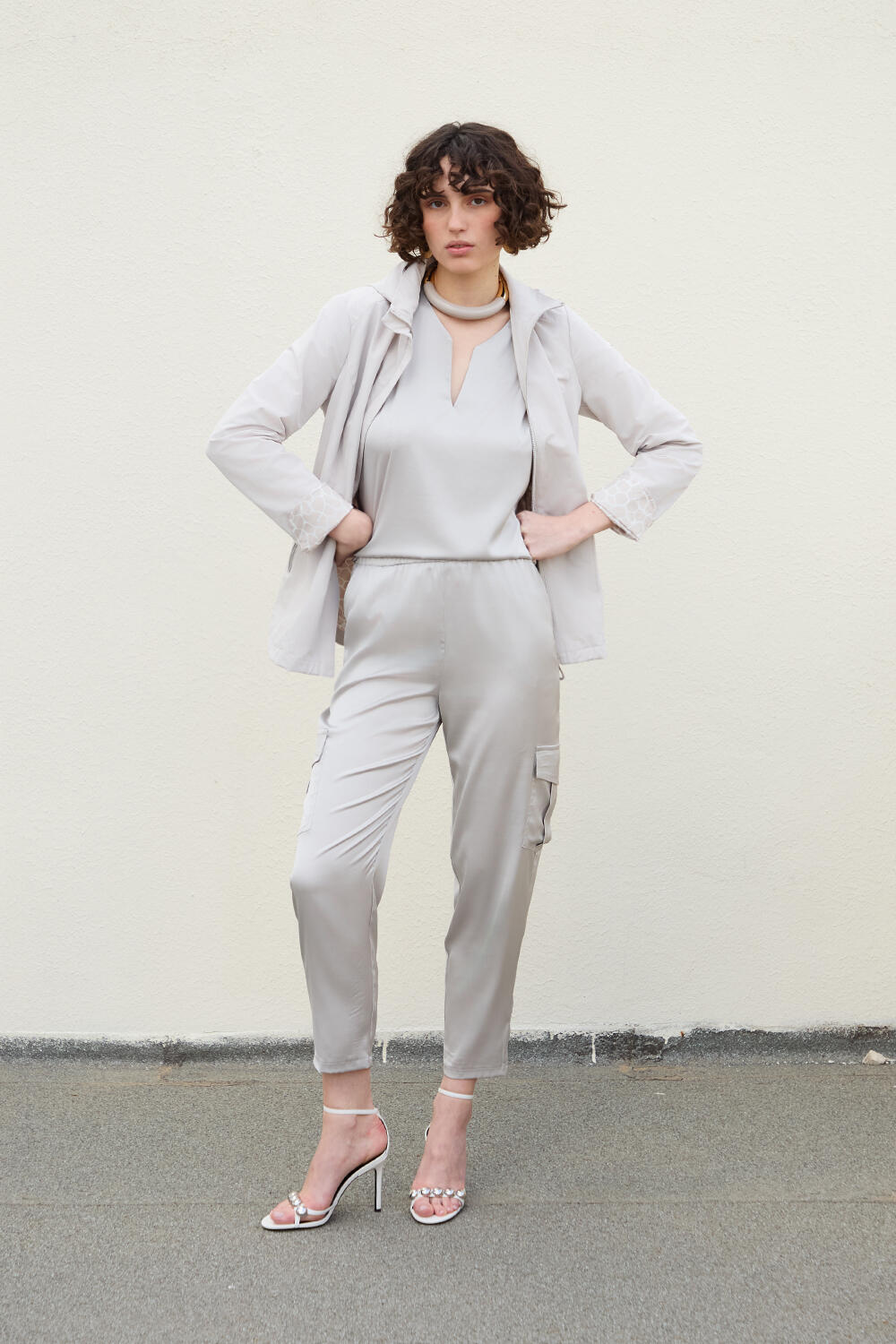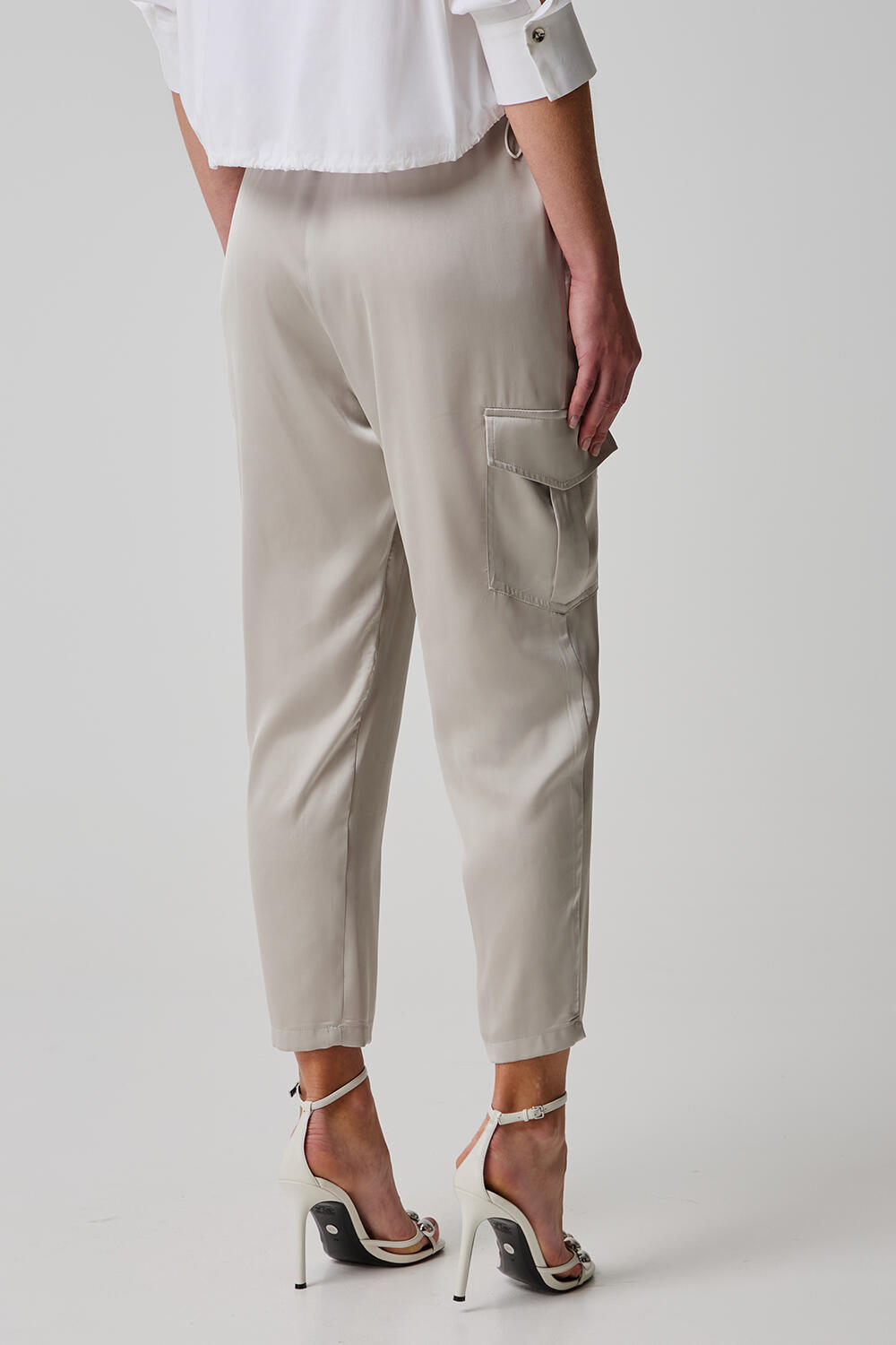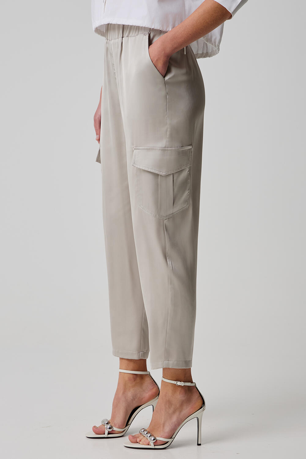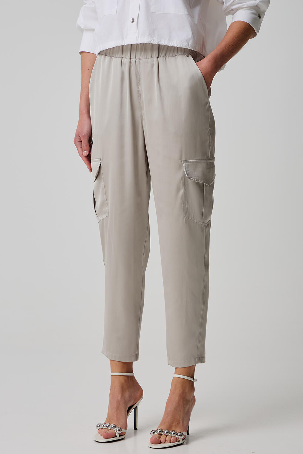 Παντελόνι cargo σατέν Κωδικός 10-050440-0 Περιγραφή Παντελόνι cargo σατέν, με πλαϊνές τσέπες και λάστιχο στη μέση. Σύνθεση 95% polyester 5% spandex