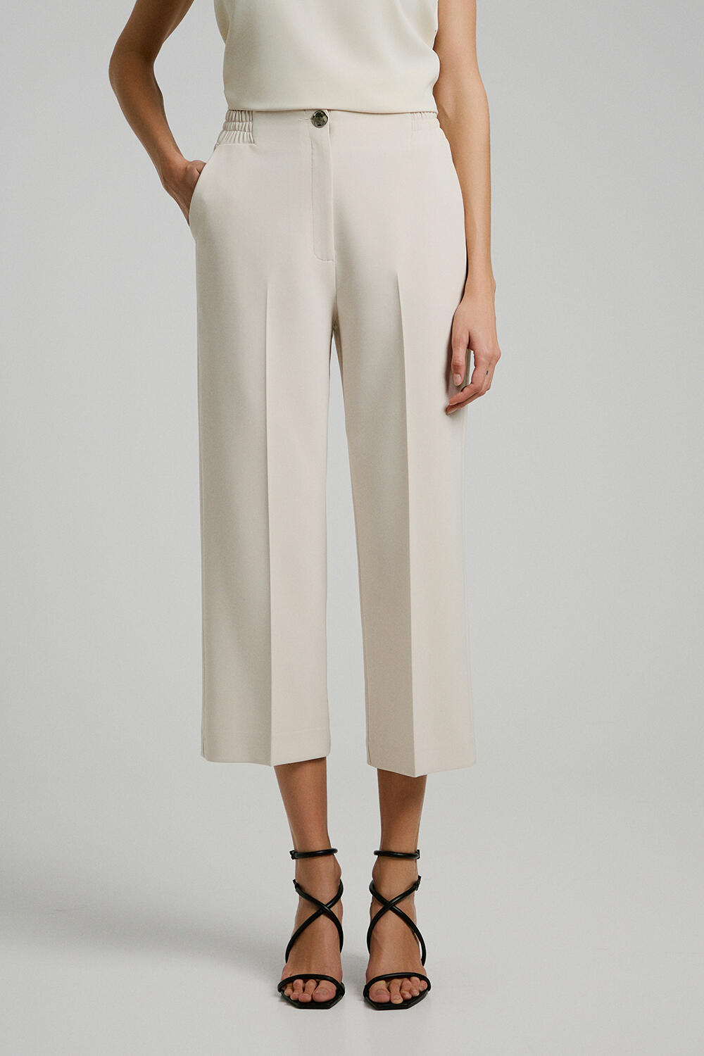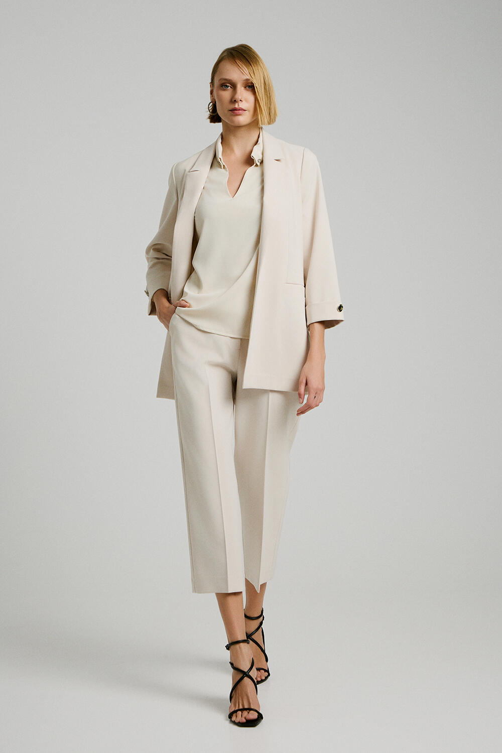 Παντελόνι, με ελαστική μέση , τσέπες στο πλάι και κλείσιμο με κουμπί κόσμημα.Συνδυάστε με το σακάκι 10-060967-0 ίδιας ποιότητας για ένα ολοκληρωμένο outfit.