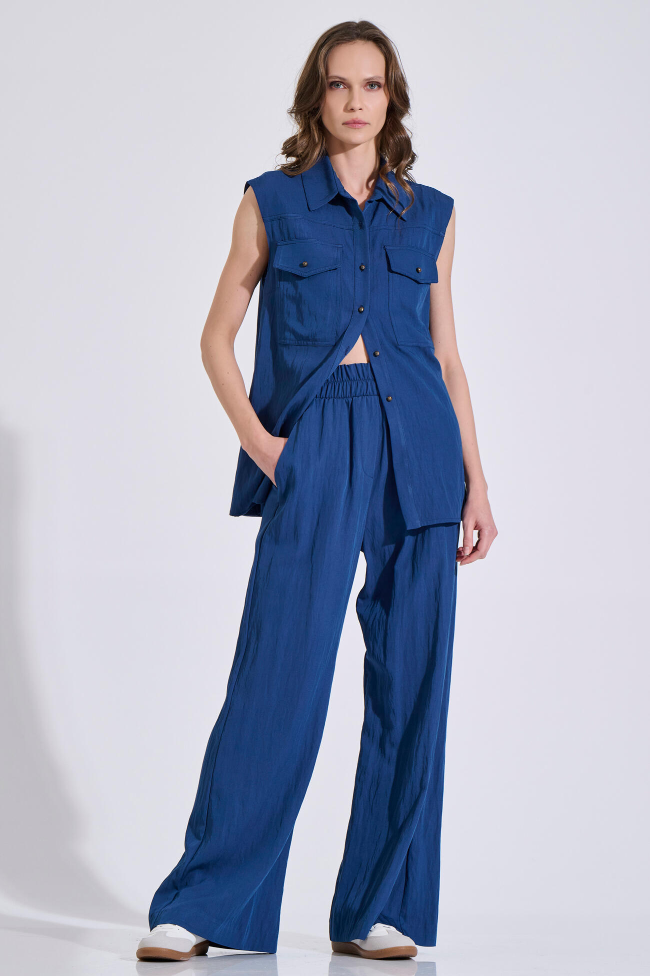 Παντελόνι σε άνετη, φαρδιά γραμμή με λάστιχο στη μέση για μεγαλύτερη άνεση και τέλεια εφαρμογή. Διαθέτει πλαϊνές τσέπες και ανάλαφρη κίνηση στο ύφασμα. Φοριέται μόνο του ή σε σετ με το αντίστοιχο πουκάμισο 19-060812-0 για ένα ολοκληρωμένο σύνολο.