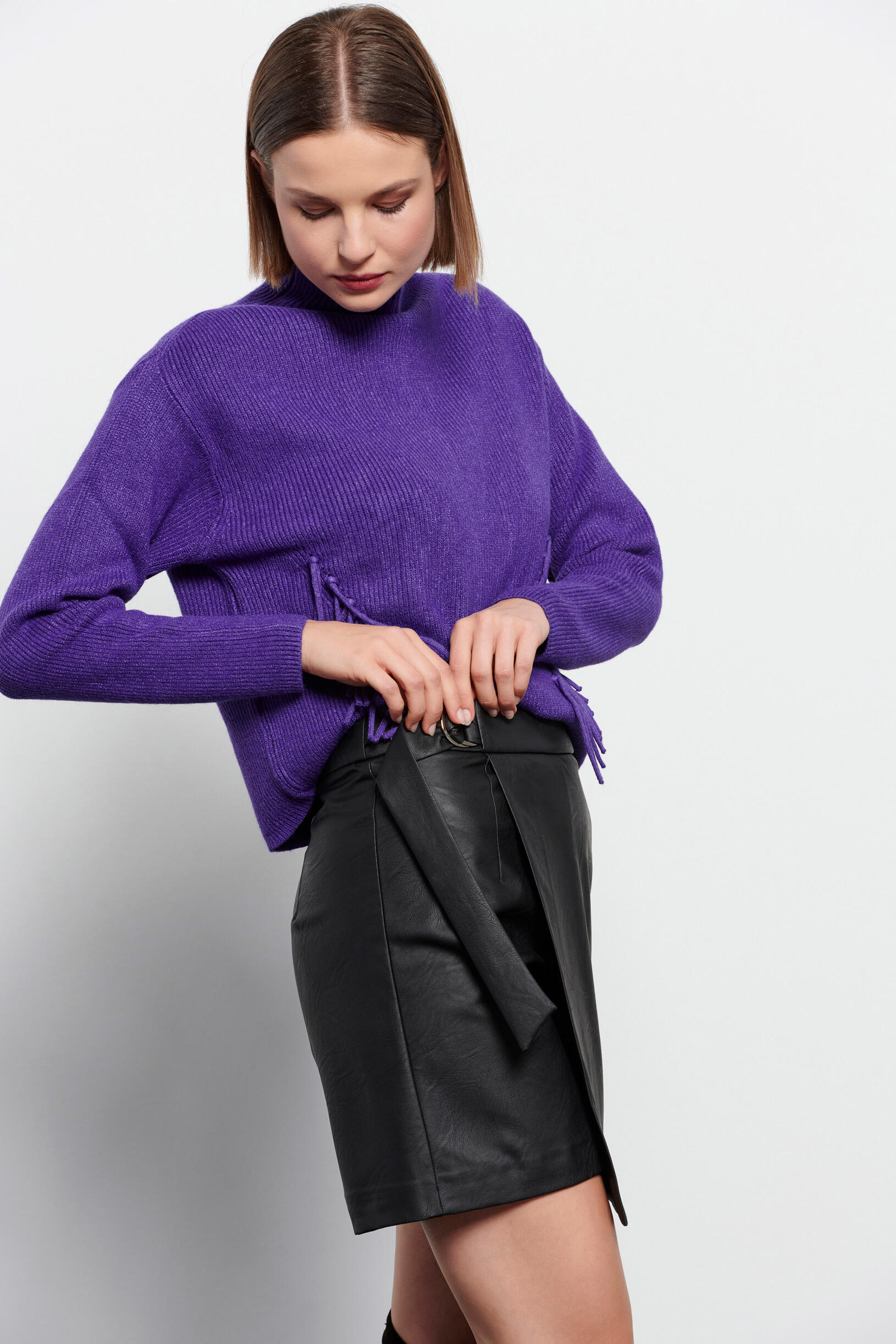 Παντελονόφουστα με όψη δερματίνης Κωδικός 10-010148-0 Περιγραφή Παντελονόφουστα από οικολογικό δέρμα και μεταλλική λεπτομέρεια στο πλάι. Σύνθεση 100% polyurethane