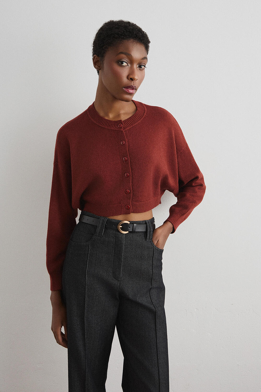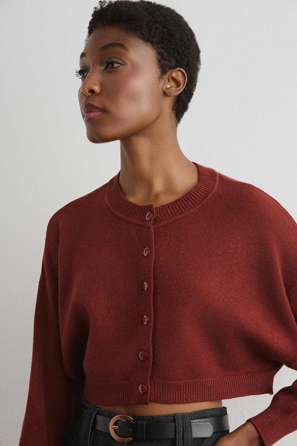 Ζακέτα πλεκτή crop Κωδικός 20-131314-0 Περιγραφή Πλεκτή ζακέτα με ριπ λεπτομέρειες , σε άνετη γραμμή .