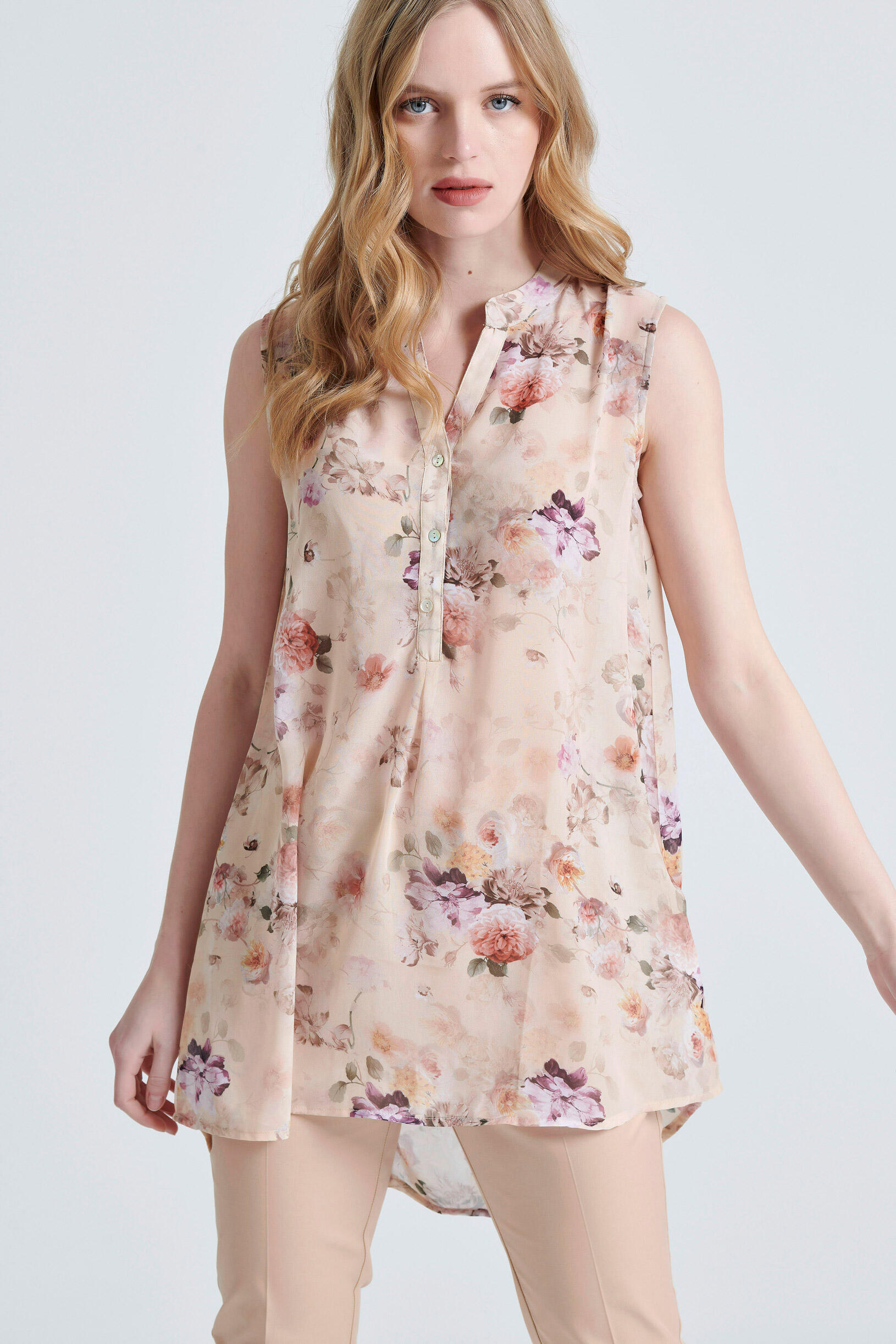 Αμάνικη πουκαμίσα Κωδικός 20-340832-0 Περιγραφή Εμπριμέ αμάνικη πουκαμίσα με μάο γιακά και κουμπιά μπροστά. Σύνθεση 100% polyester