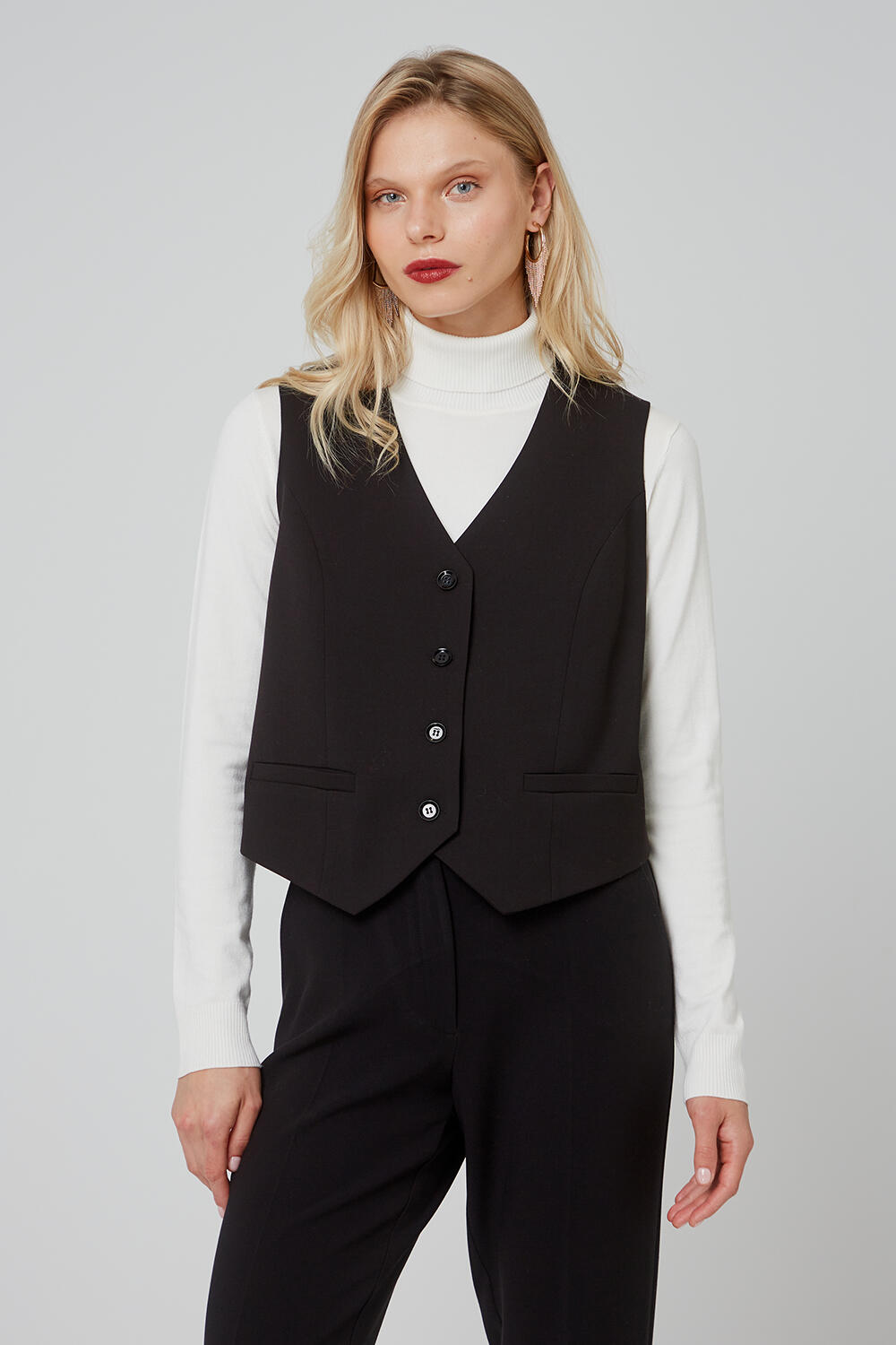 Γιλέκο σε κλασικό σχέδιο με κουμπιά μπροστά. Συνδυάστε το με το 10-410158-0 σακάκι και 10-410159-0 παντελόνι ζιπ για ένα total look.
