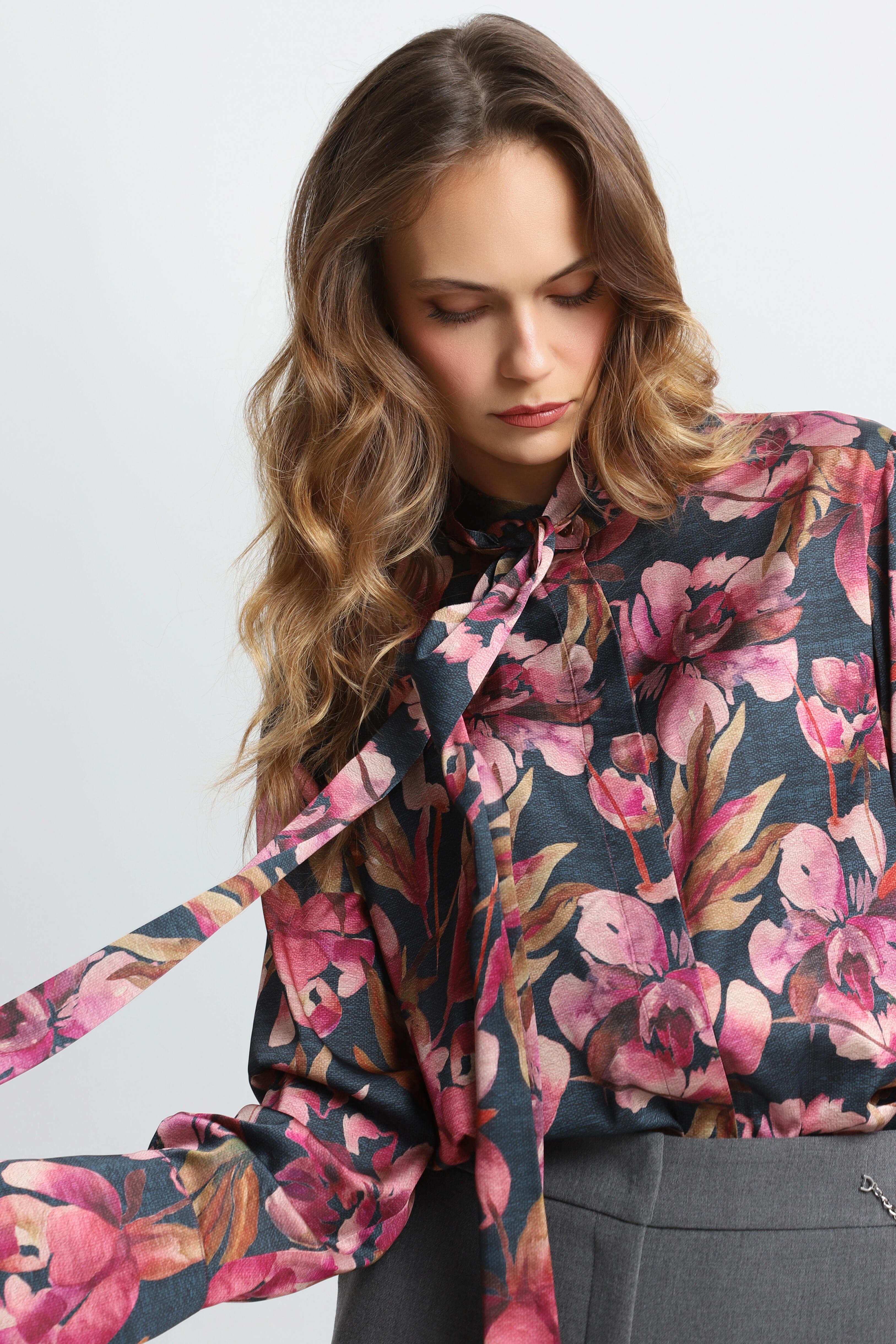 Πουκάμισο με μοτίβο λουλούδια Κωδικός 10-342273-0 Περιγραφή Πουκάμισο εμπριμέ με διακοσμητική ζώνη και κλείσιμο με κουμπιά μπροστά. Σύνθεση 65% recycled polyester 33% polyester 2% spandex
