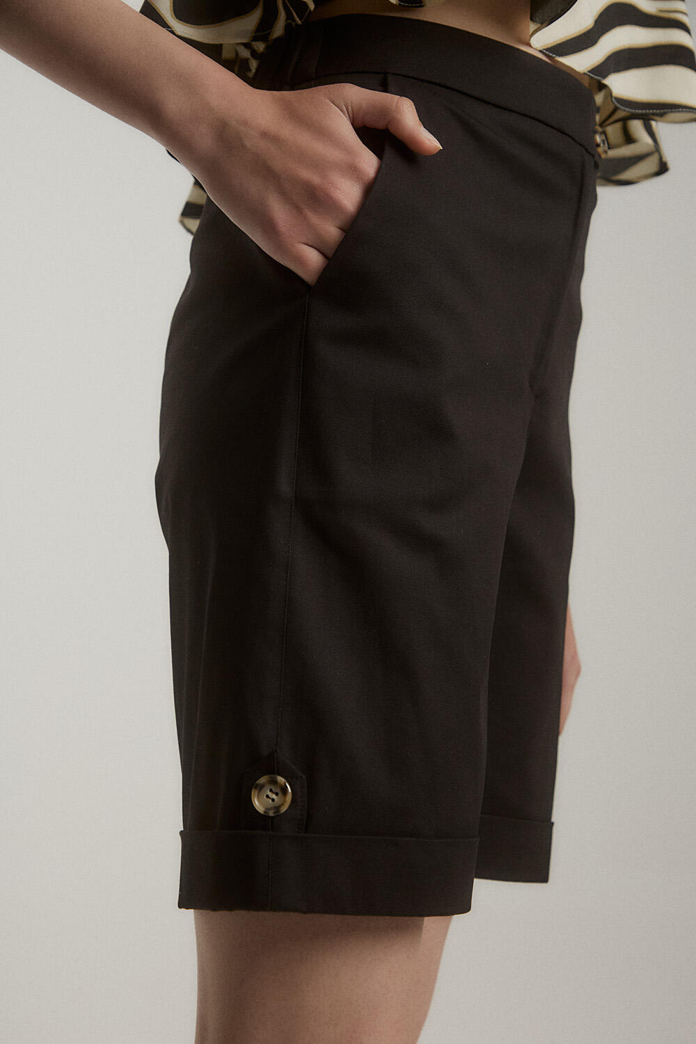 Βερμούδα βαμβακερή Κωδικός 10-060787-0 Περιγραφή Βερμούδα βαμβακερή μεσαίου μήκους με ρεβερ και λάστιχο στη μέση. Πλαϊνές τσέπες και κλείσιμο μπροστά με κουμπί και φερμουάρ. Σύνθεση 97% cotton 3% spandex