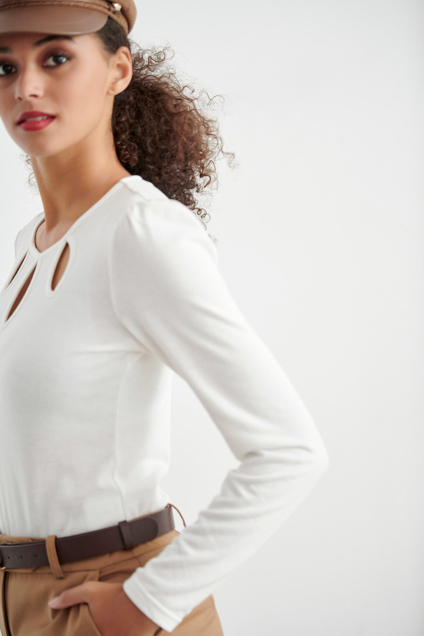 Πλεκτή μπλούζα με ανοίγματα Κωδικός 10-130146-0 Περιγραφή Μακρυμάνικη πλεκτή μπλούζα με ελαστικότητα και ανοίγματα μπροστά. Διαθέτει στρογγυλή λαιμόκοψη και σούρες στους ώμους. Σύνθεση 78% polyester 18% rayon 4% spandex