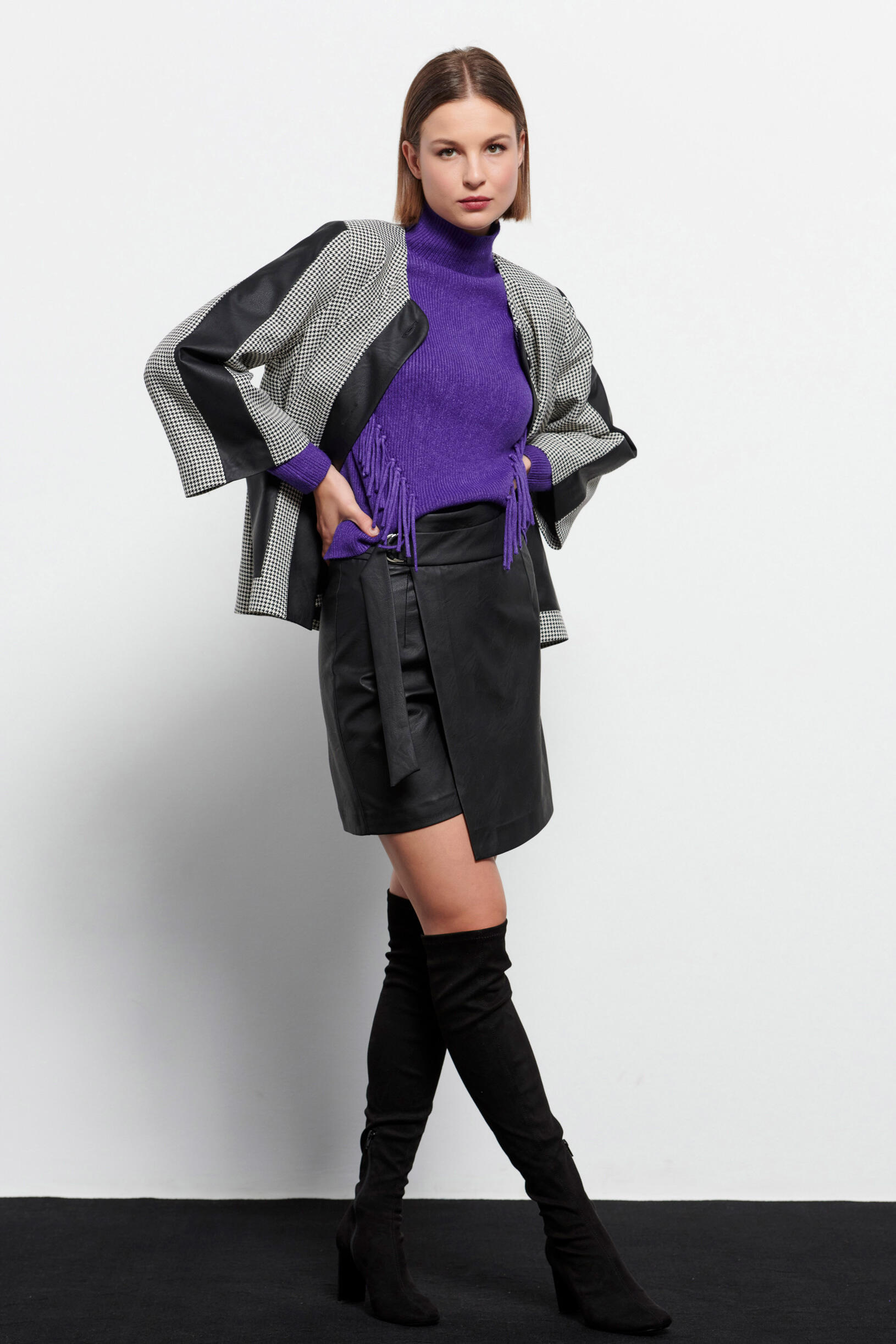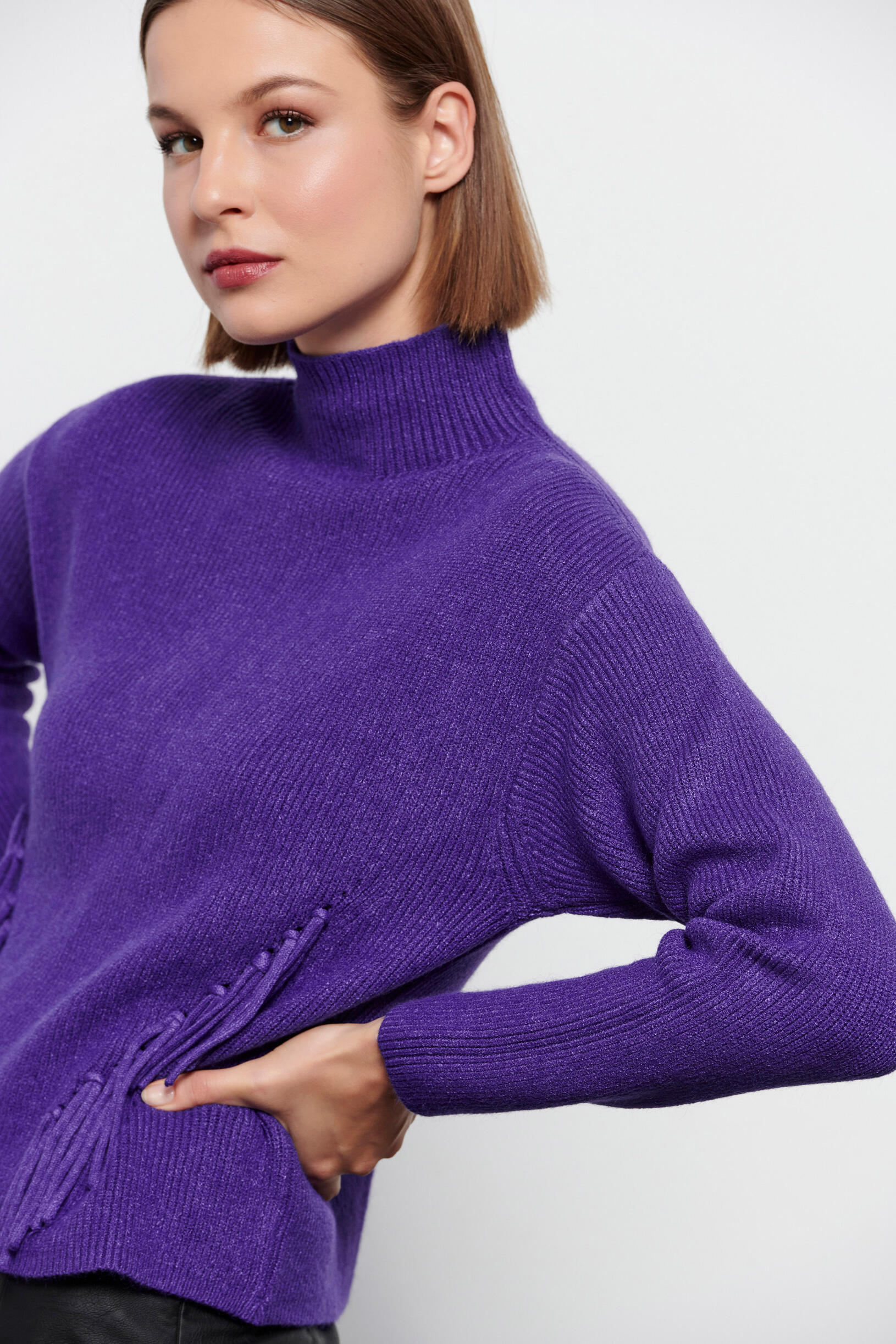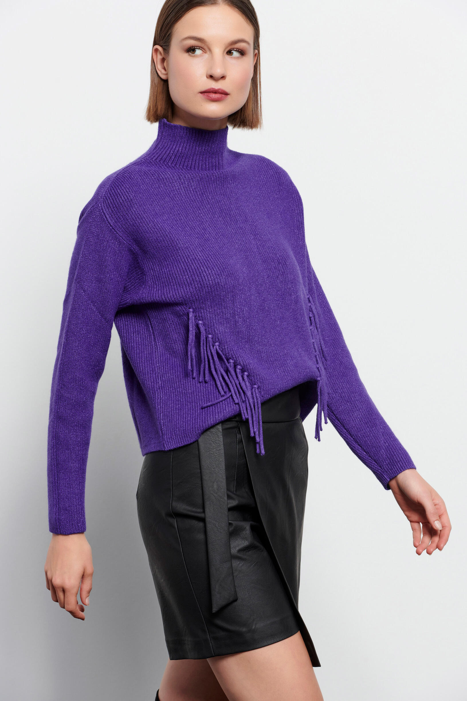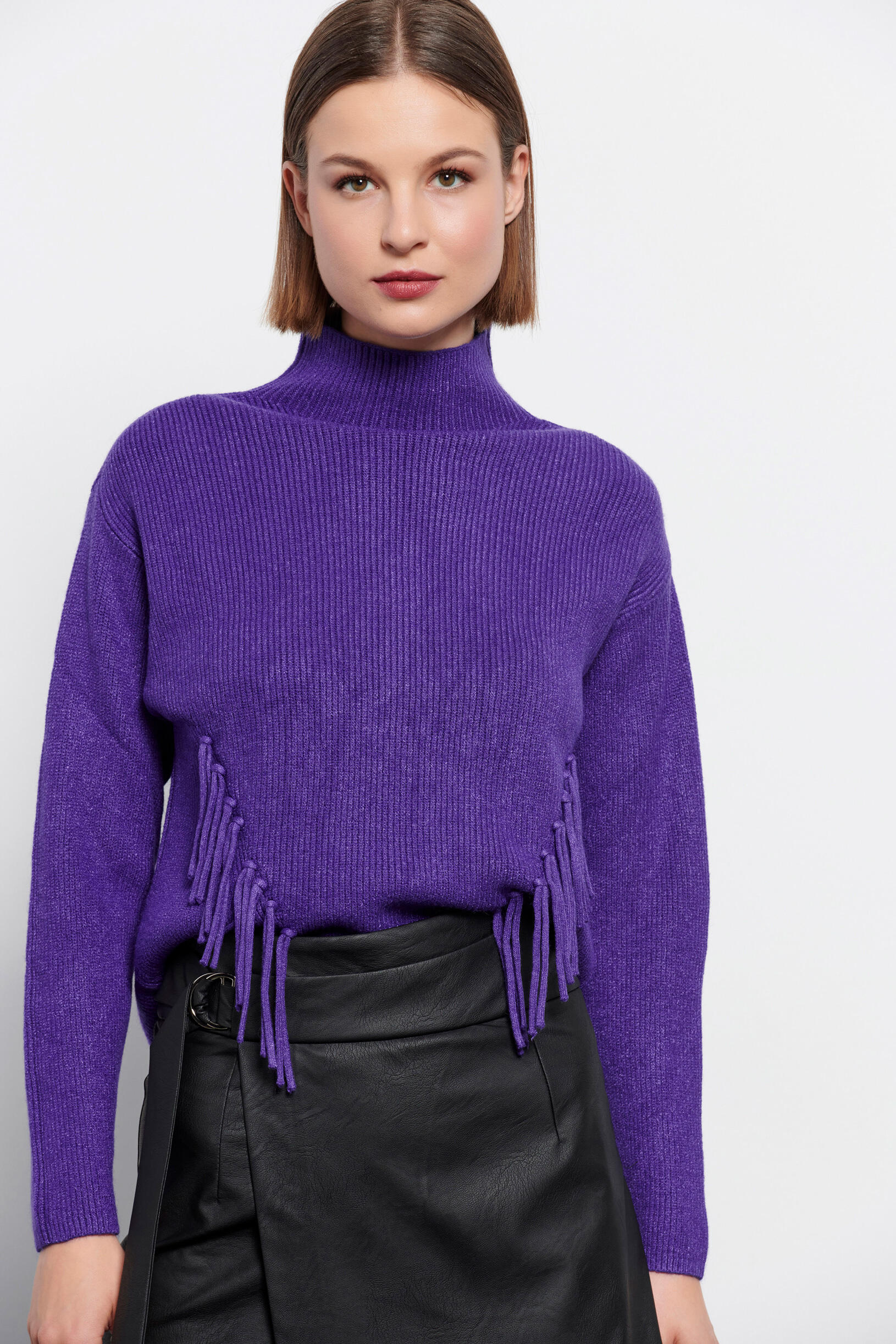 Πλεκτή μπλούζα με κρόσσια στο τελείωμα Κωδικός 20-131229-0 Περιγραφή Πλεκτή μακρυμάνικη μπλούζα με λαιμόκοψη ζιβάγκο. Σχέδιο με κρόσσια στο τελείωμα. Σύνθεση 56% viscose 28% polyester 16% nylon