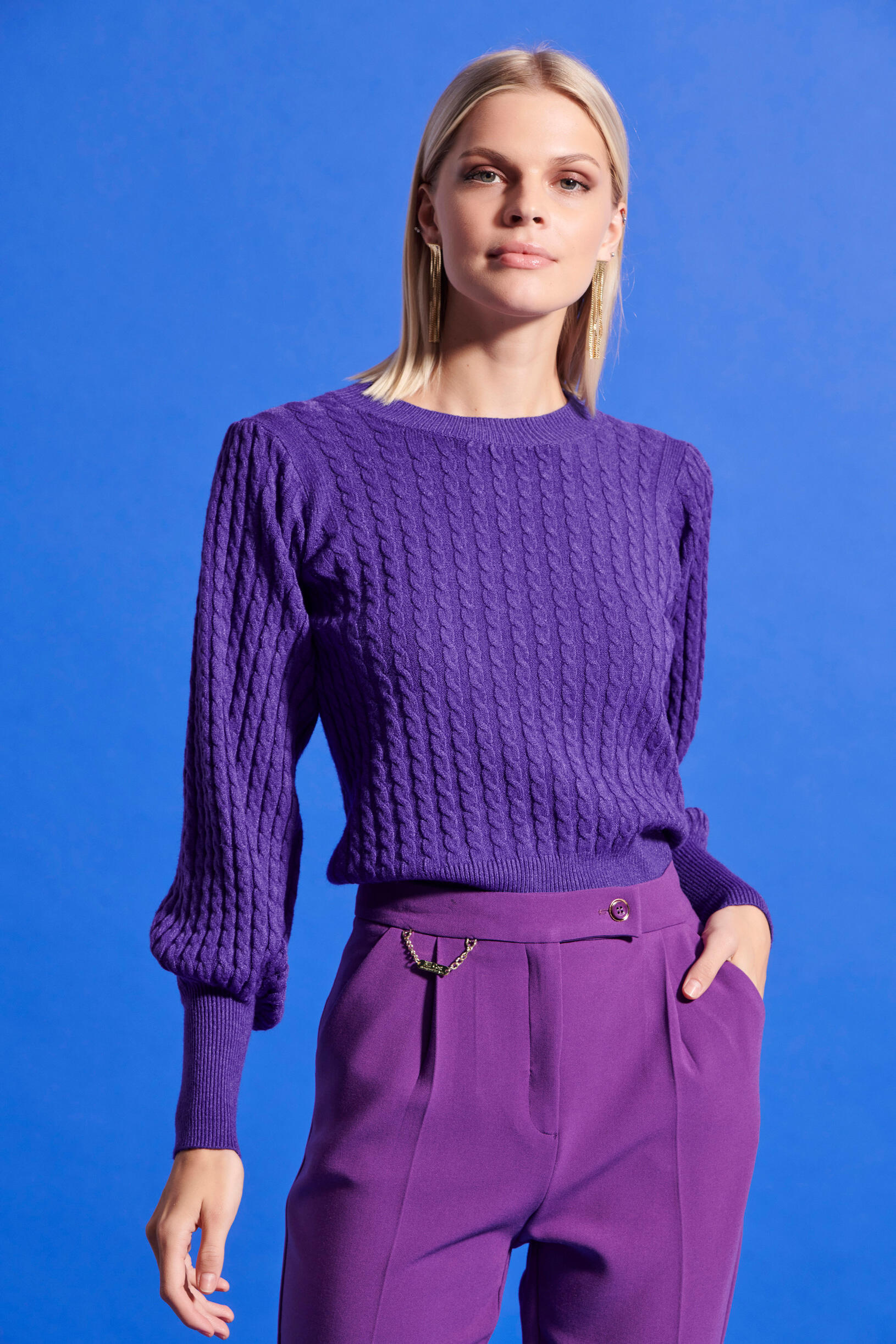 Πλεκτή μπλούζα με πλεξούδα σχέδιο Κωδικός 20-131246-0 Περιγραφή Μπλούζα πλεκτή με στρογγυλή λαιμόκοψη και ριπ τελειώματα.Εύκολη και κομψή επιλογή για όλες τις ώρες. Σύνθεση 56% viscose 28% polyester 16% nylon