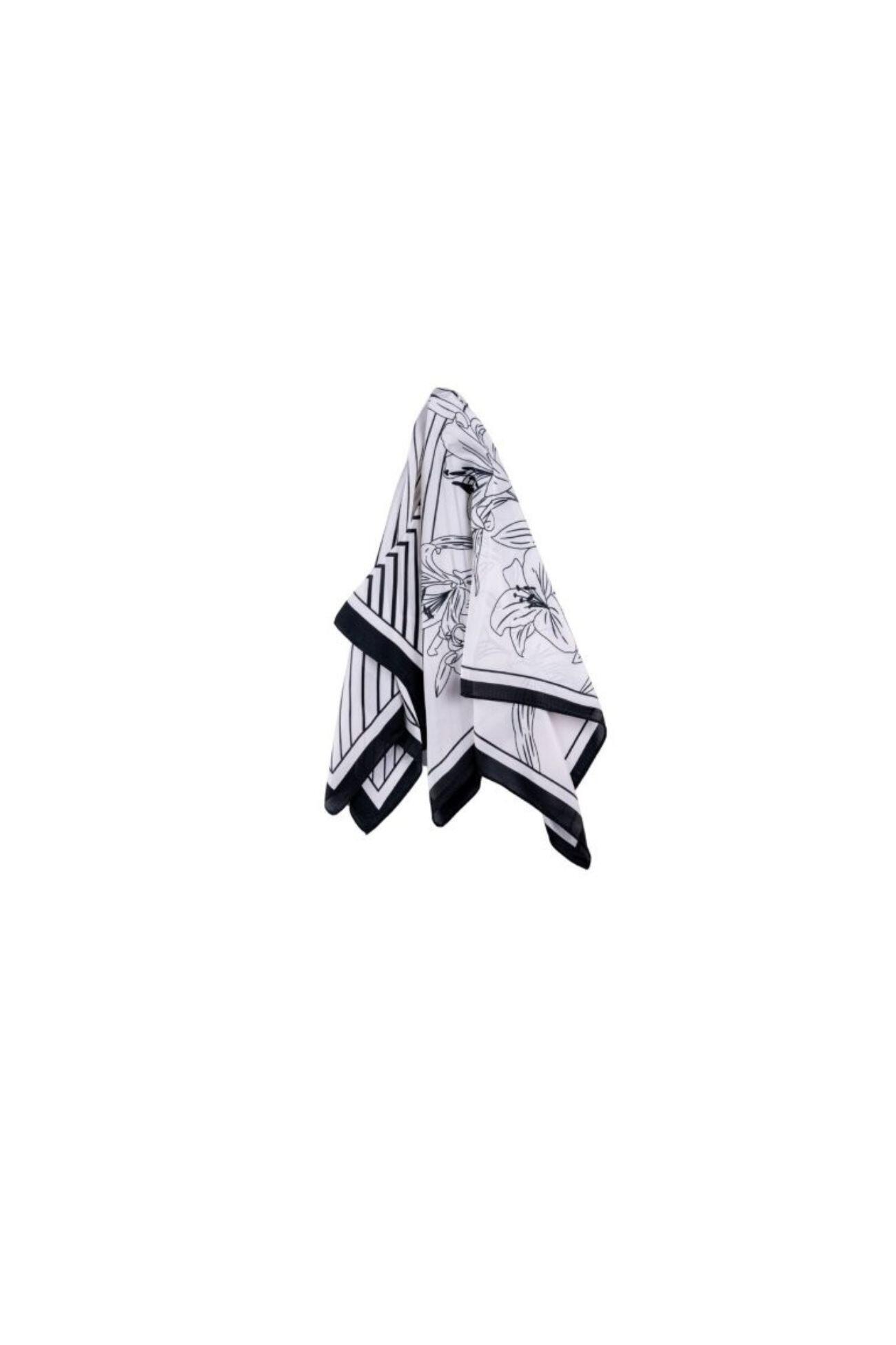 Φουλάρι με ασπρόμαυρο εμπριμέ σχέδιο και καθαρές γραμμές. Ιδανικό για να δώσει ισορροπία και κομψότητα σε κάθε εμφάνιση.