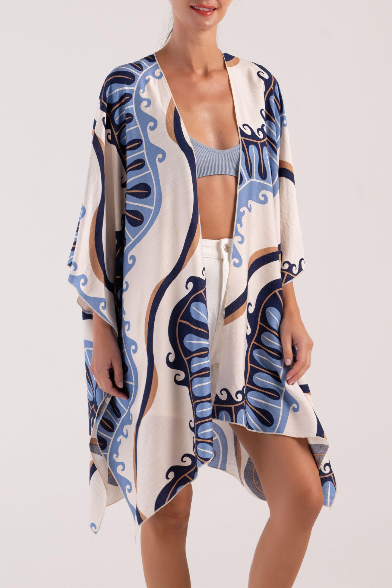 Κιμονό με ανάλαφρη υφή και εντυπωσιακό εμπριμέ σχέδιο. Ιδανικό για layering, ολοκληρώνει κάθε εμφάνιση με μοντέρνο χαρακτήρα.