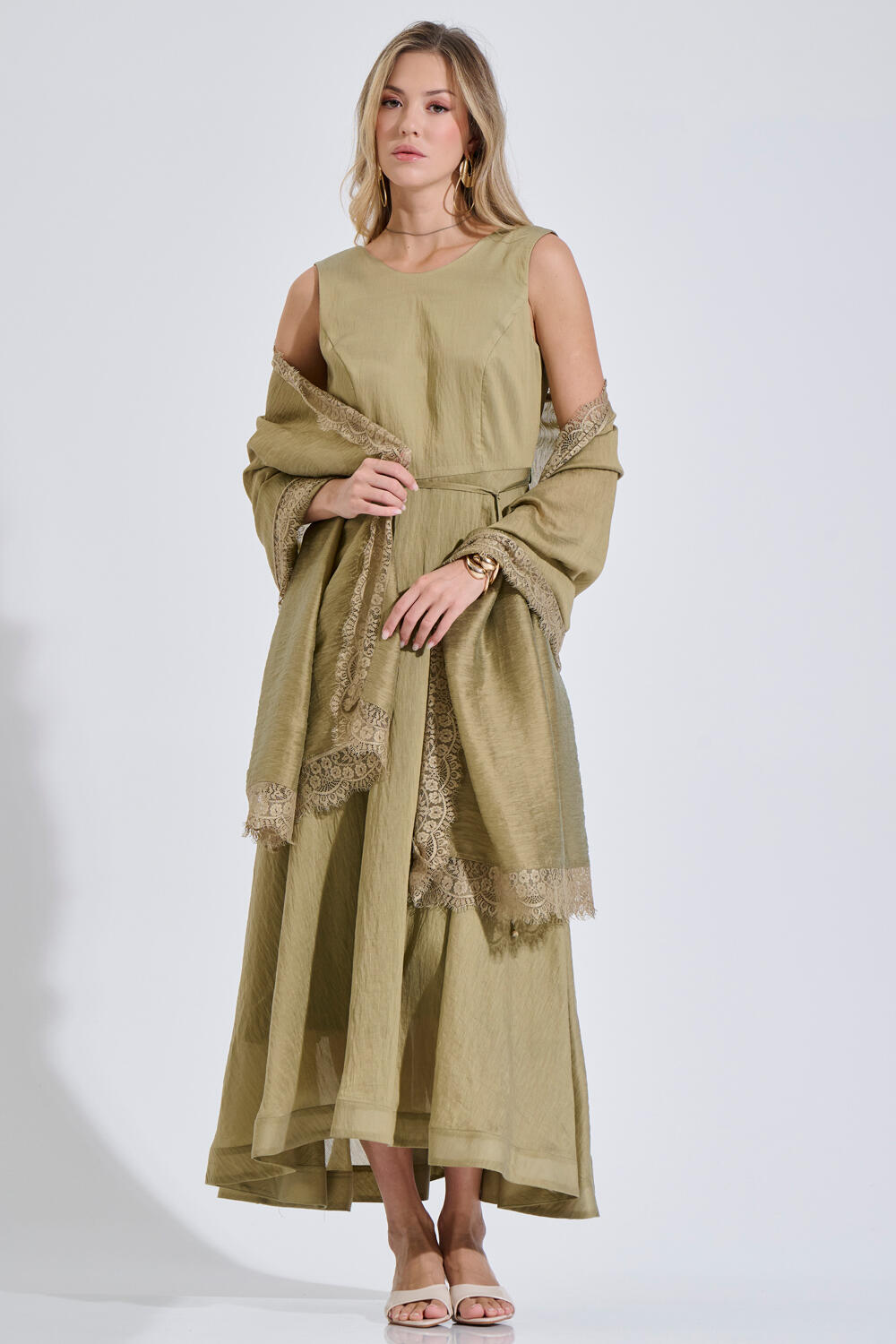 Αμάνικο Μίντι Φόρεμα από Lyocell & Λινό με Ζωνάκι & V Πλάτη