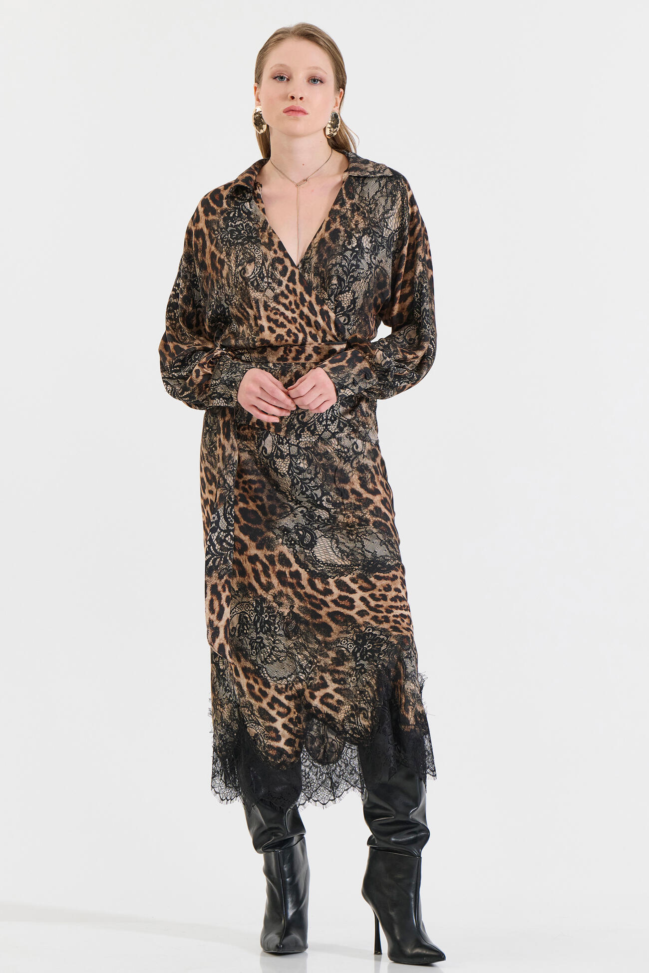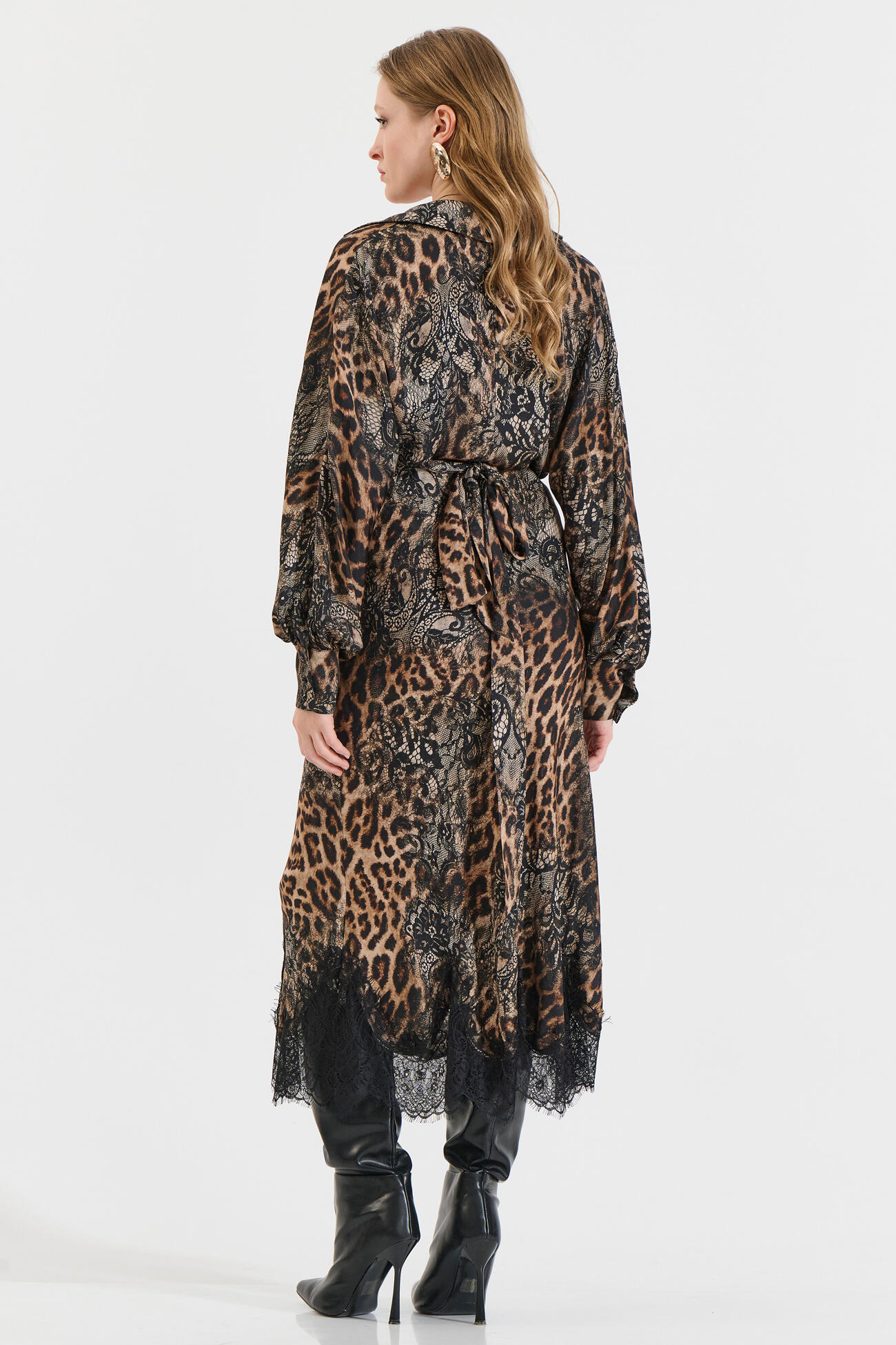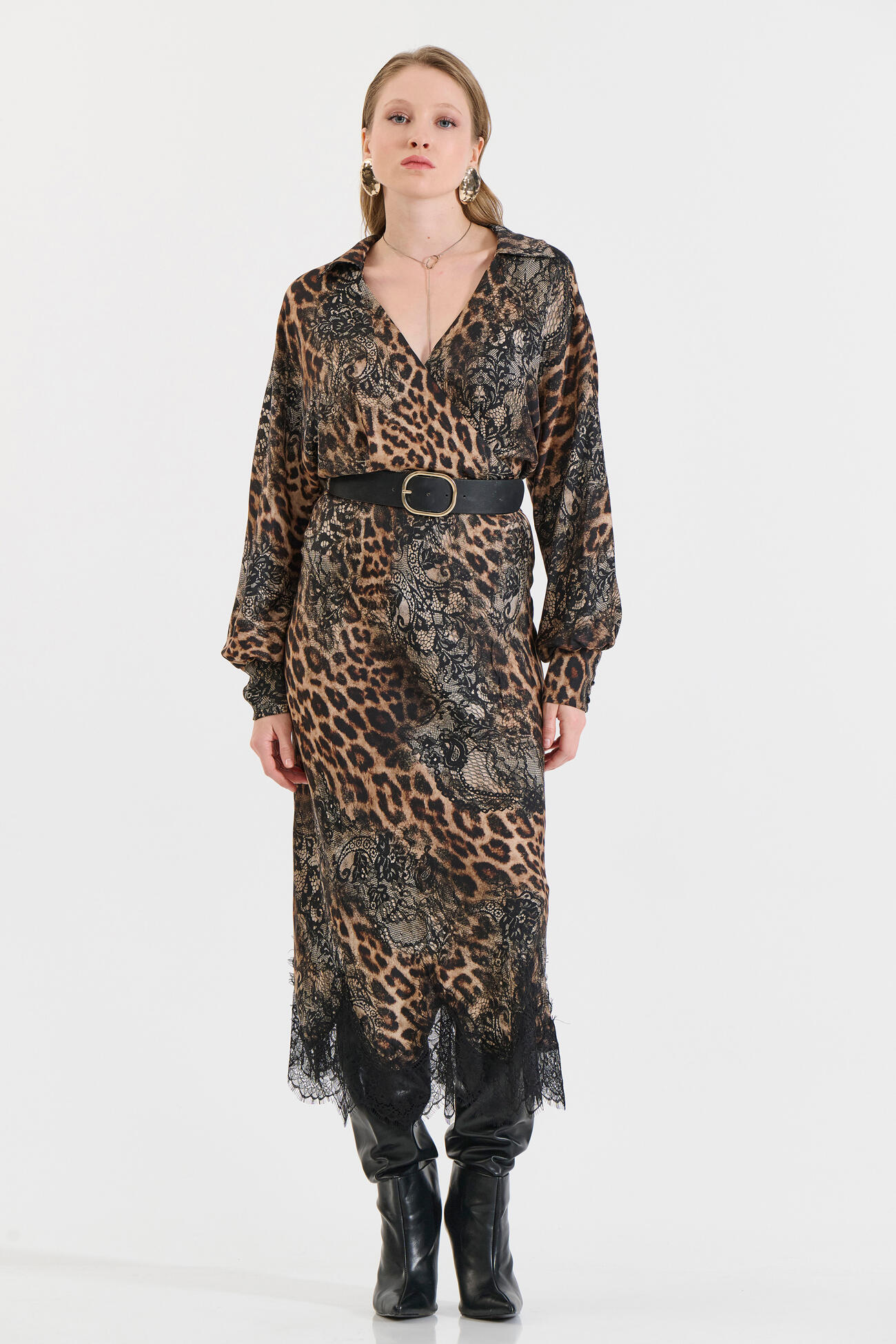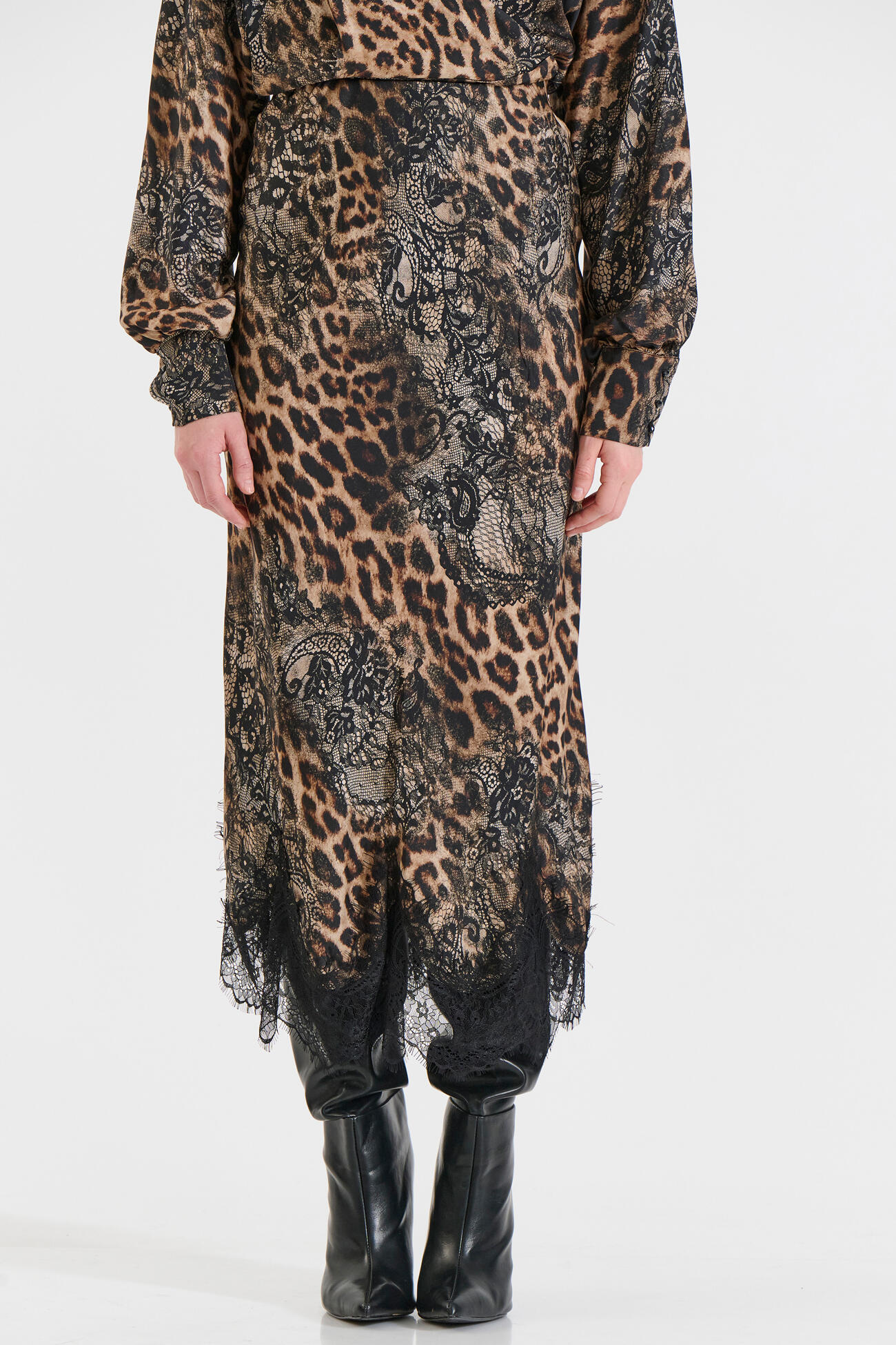 Φούστα με λεοπάρ μοτίβο και δαντελένιο τελείωμα που χαρίζει ρομαντικό και ταυτόχρονα δυναμικό χαρακτήρα. Η απαλή της υφή προσφέρει άνεση και κομψότητα, ενώ η ίσια γραμμή της αναδεικνύει τη σιλουέτα. Ένα statement κομμάτι που ξεχωρίζει από το πρωί έως το βράδυ.Συνδυάζεται ιδανικά με το πουκαμίσο 10-342429-0.